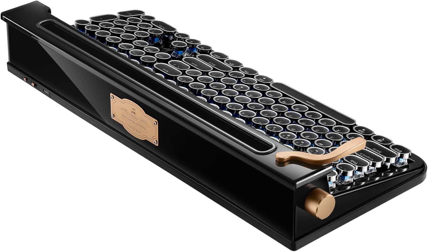 - 【 Blue switch keys 】 Experience the ultimate retro keyboard with tactile and clicky blue switches, delivering the classic typewriter "clickety-clackety" feel.