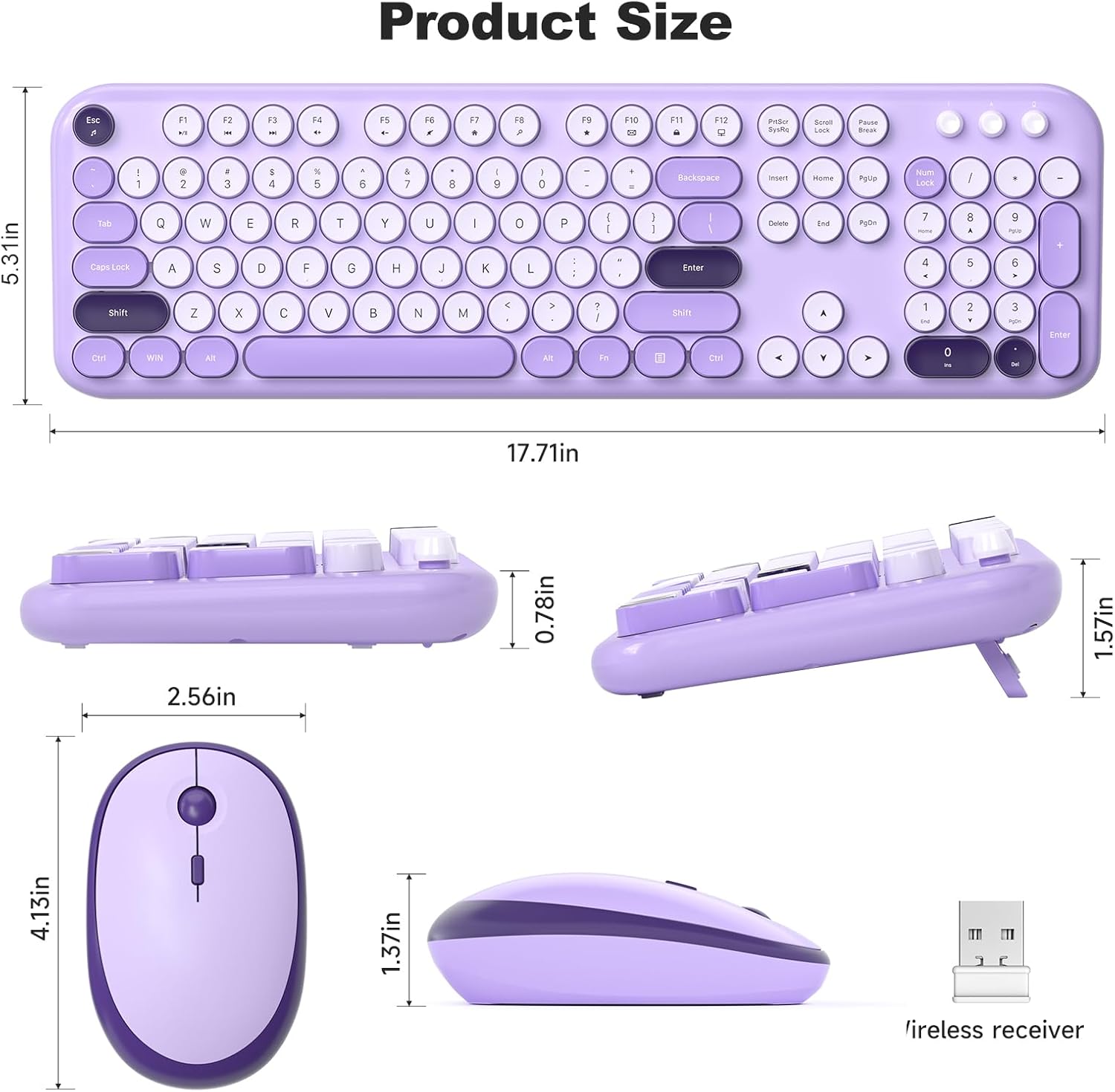 - Wireless Keyboard and Mouse Combo: 104-key colorful keyboard with floating round keys, with foldable stand and anti-slip pad ensures comfortable typing. Optical mice with 3 sensitivity levels provides precise control.