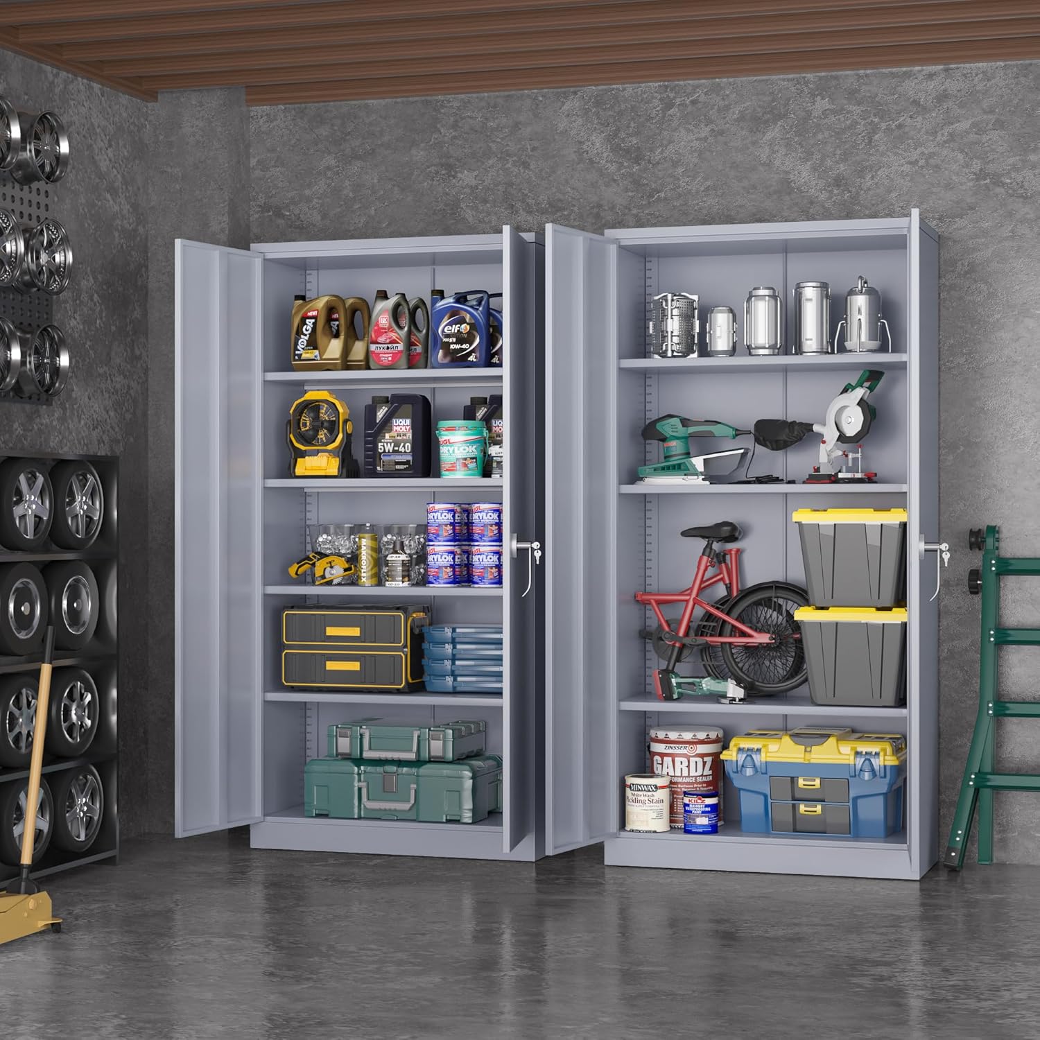 Greenvelly Metal Storage Cabinet with Doors, 72" Lockable Steel Garage Storage Cabinet with Shelves, Dark Grey 36" W x 18" D