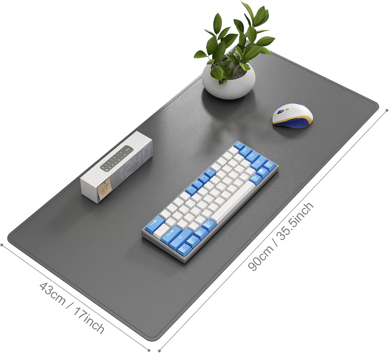 DAWNTREES Desk Mat Protector,PU Leather Desk Pad,Non Slip, Large Mouse Pad and Keyboard Mat, Waterproof Writing Pad for Office and Home (Dark Gray,35.5''x16.9'')