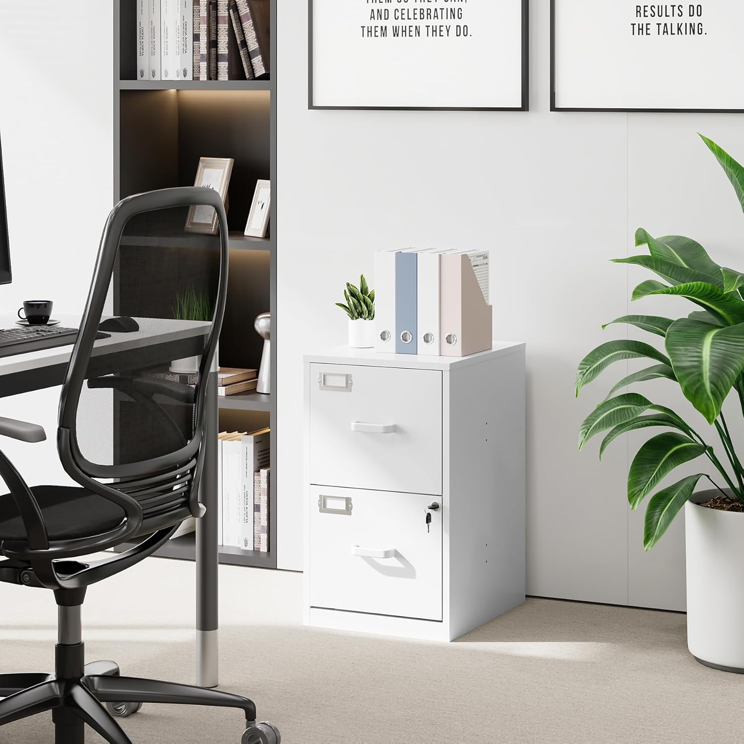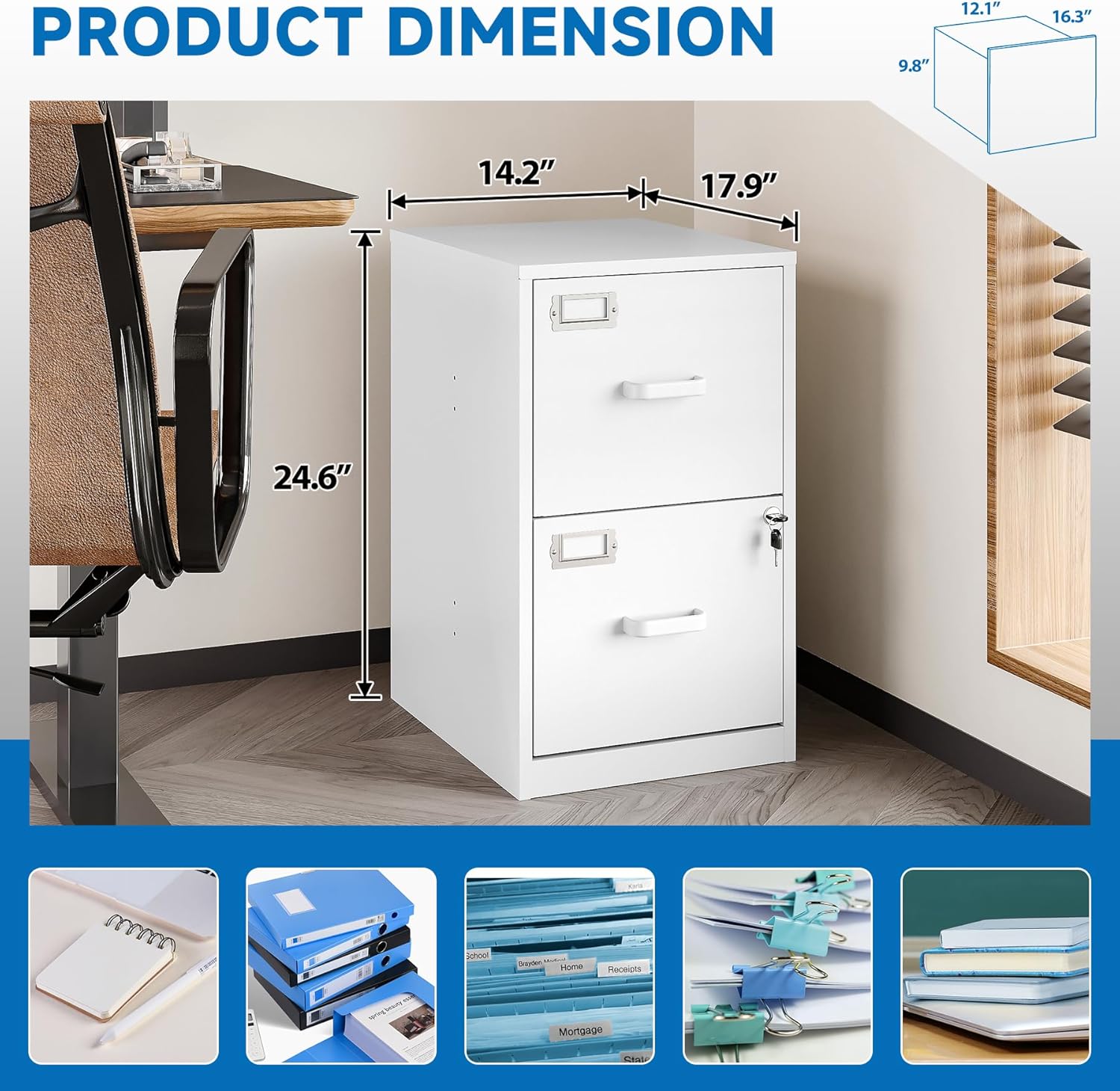 - ăUNIQUE DESIGNăThis file cabinet can lock 2 drawers at the same time with one lock, and is equipped with 2 keys. Business card holders on drawers can also be labeled according to the different documents stored.