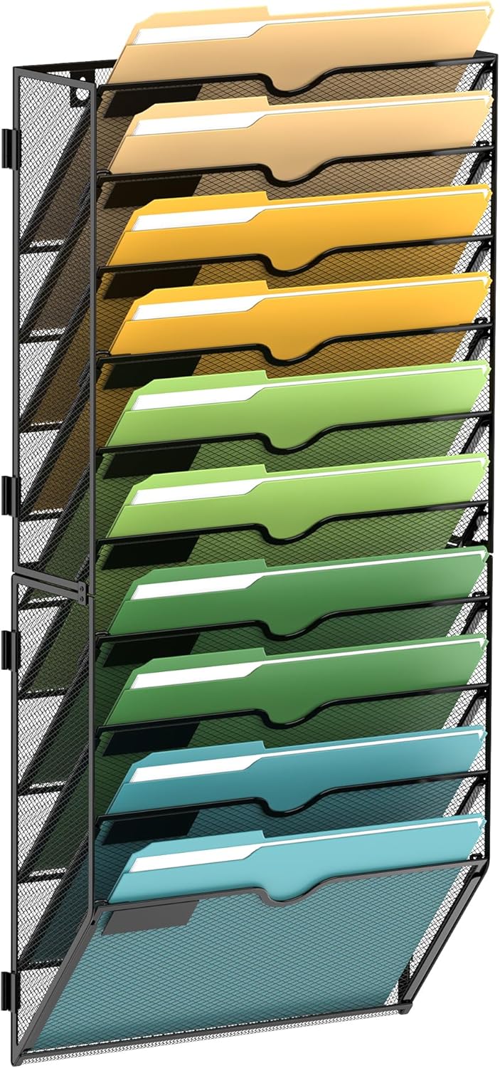 SUPEASY 10-Tier Wall File Organizer Mesh Office Mail Holder, Hanging Wall Organizer Magazine Rack for Office Black