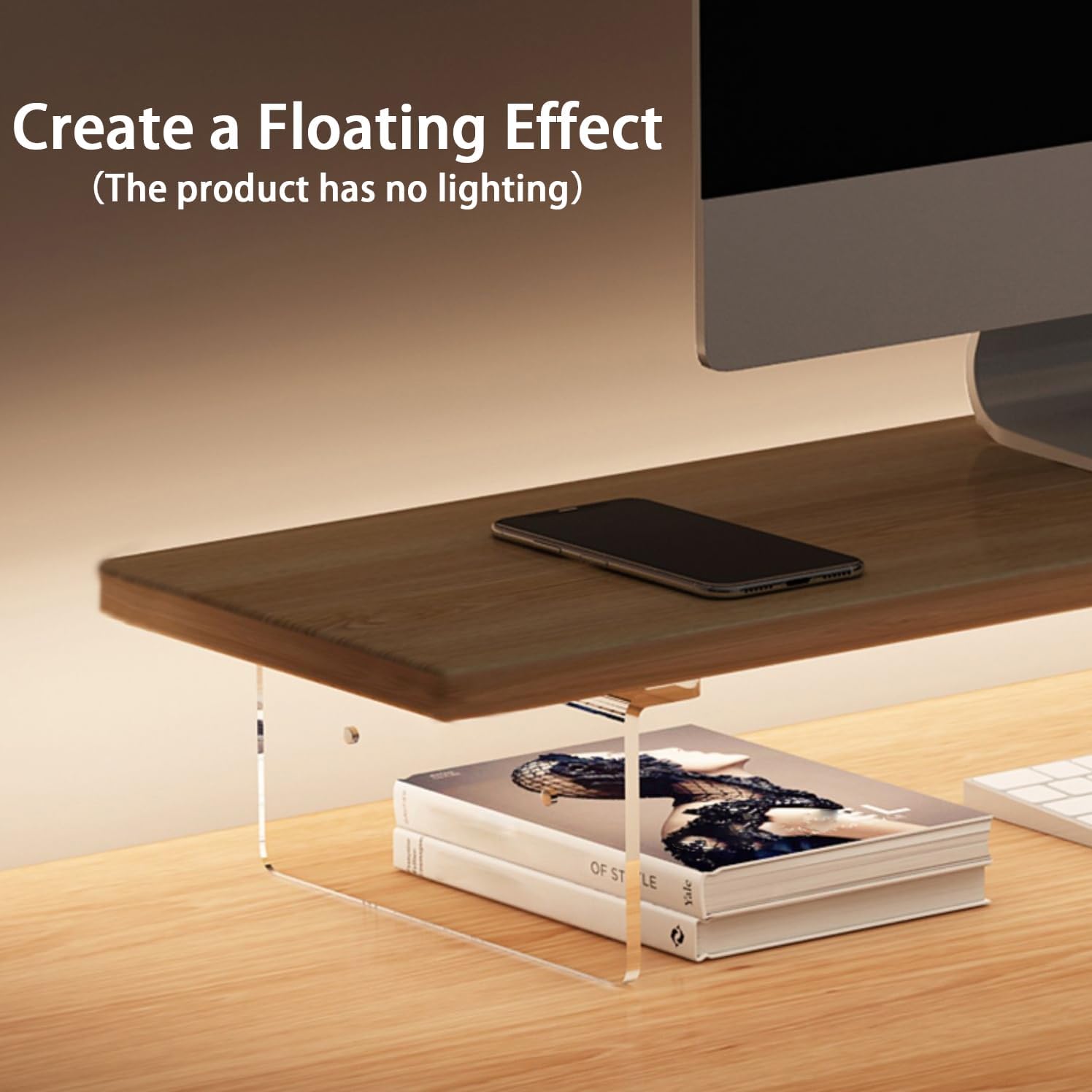 - 【Solid Wood Desktop】Smooth, stylish, and comfortable. It enhances your computer usage experience and can also serve as a riser for small TVs, keyboards, or laptops.Clear acrylic base creates a floating effect.