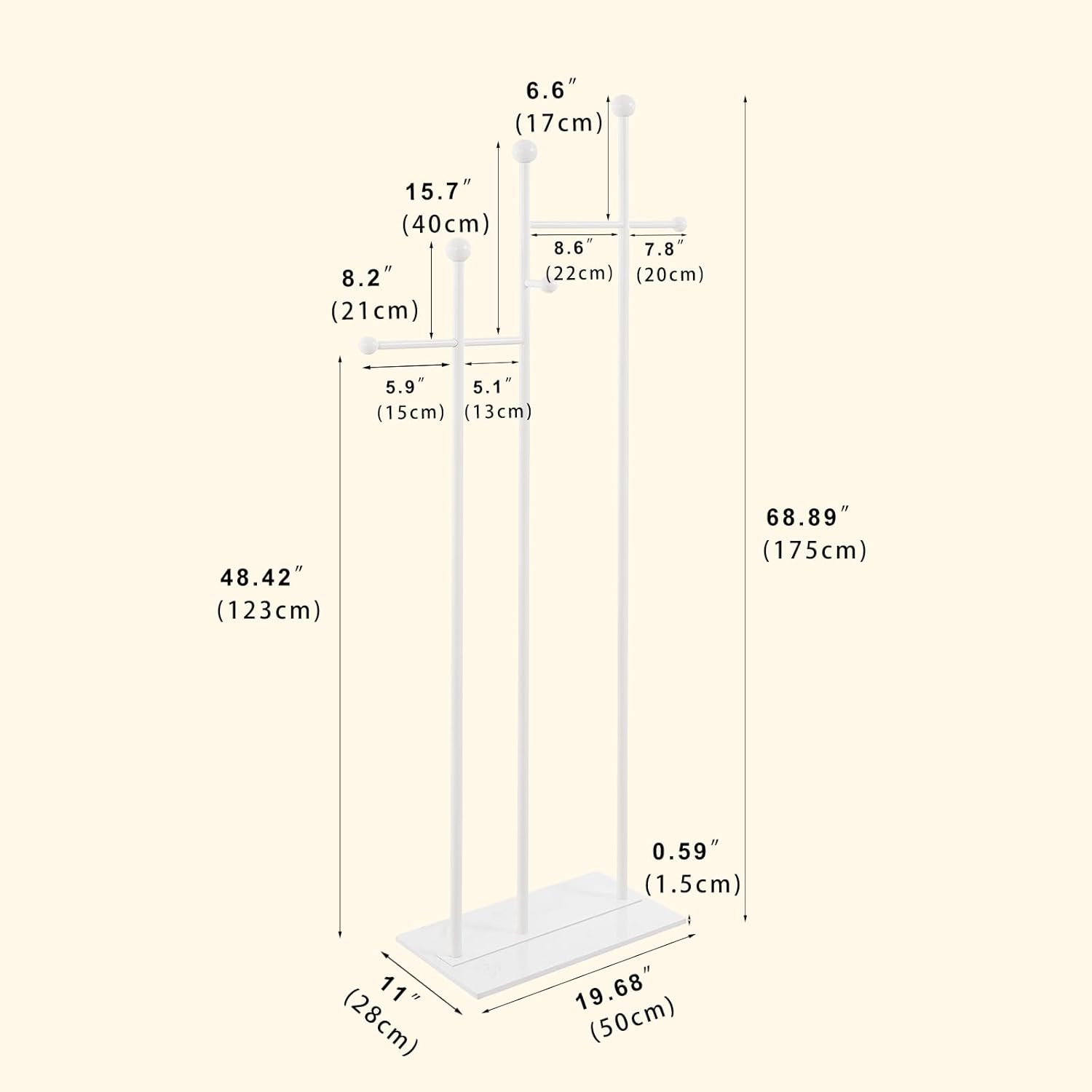 Freestanding Coat Rack with Marble Base Heavy Duty Clothes Rack Metal Coat Tree Stand Hat Rack for Corner Bedroom Entryway Living Room Hotel 19.69 x 11.02 x 68.9 Inches (White)