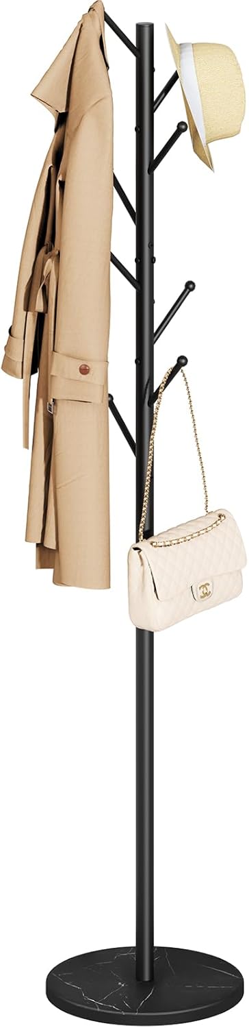 Yoobure Coat Rack Freestanding with Natural Marble Base - Coat Tree with 8 Hooks Heavy Duty Coat Hanger Stand, Metal Coat Rack Stand for Jacket, Hat, Clothes & Bag, Hall Tree Hat Rack for Entryway
