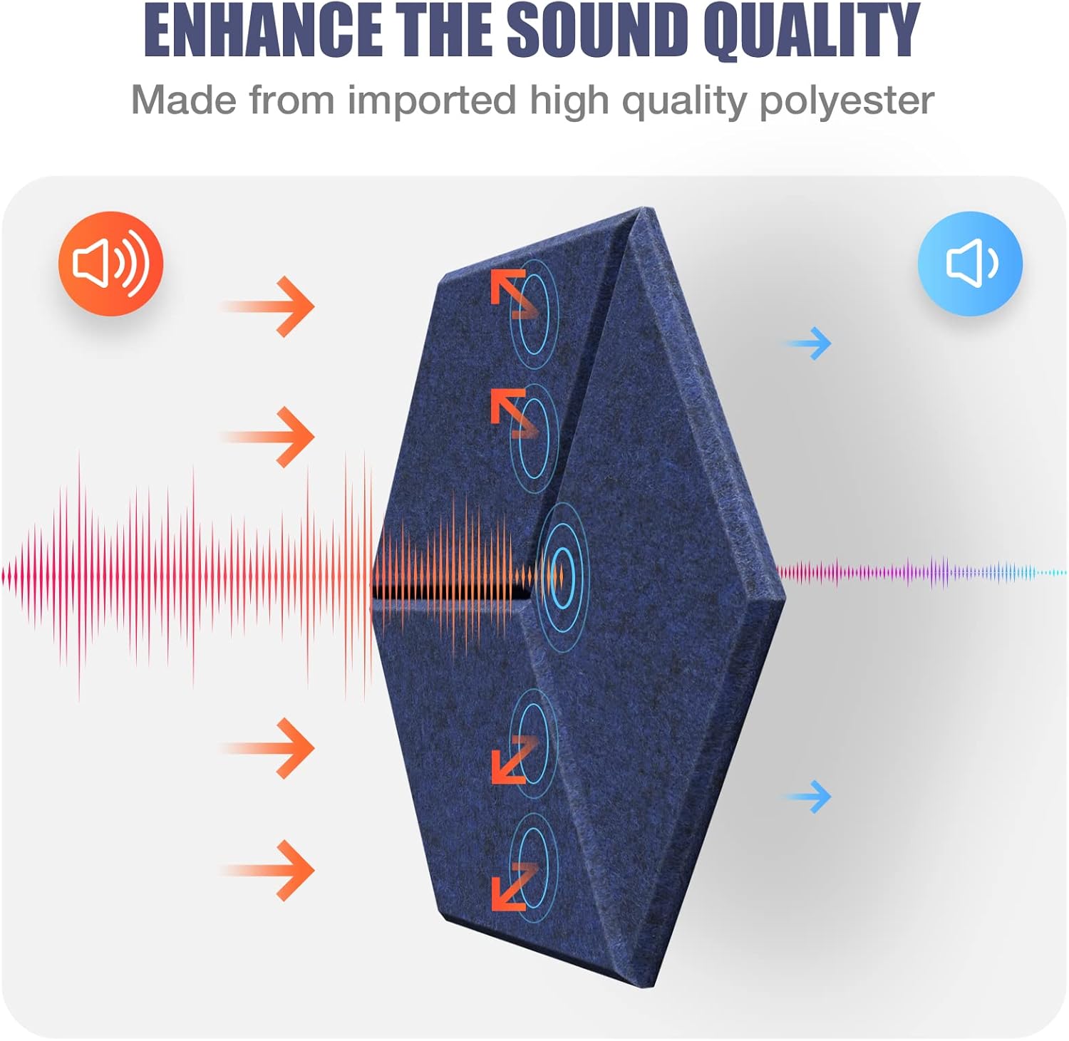 12 Pack Self-adhesive Acoustic Panels 12" X 10" X 0.4" -Sound Proof Foam Panels with High Density, Fashionable Y-Lined Design, Flame Resistant, Absorb Noise and Eliminate Echoes(Dark Bule)