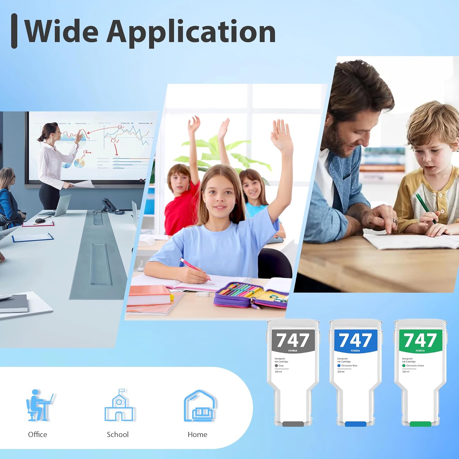 - Reliable Printing Quality: all 747 designjet ink cartridges are tested to the most rigorous quality, ensure smooth, clean printed text and vibrant color images