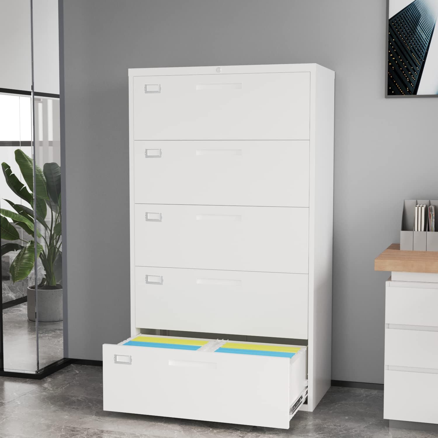 Lateral File Cabinet with 5 Drawers - White Metal Steel Filling Cabinets for Home Office - Lockable Storage Cabinet for Hanging Files Letter/Legal/F4/A4 Size-Assembly Required