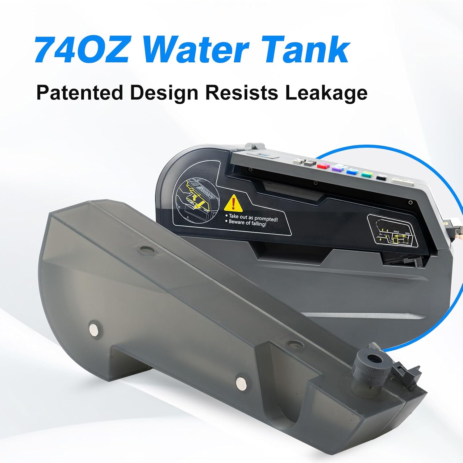 - Easy Removable Large Capacity Water Tank: The tape dispenser has a large 74 oz water tank for long-lasting operation, the water tank is easily removable and can be easily removed to keep it clean and dry