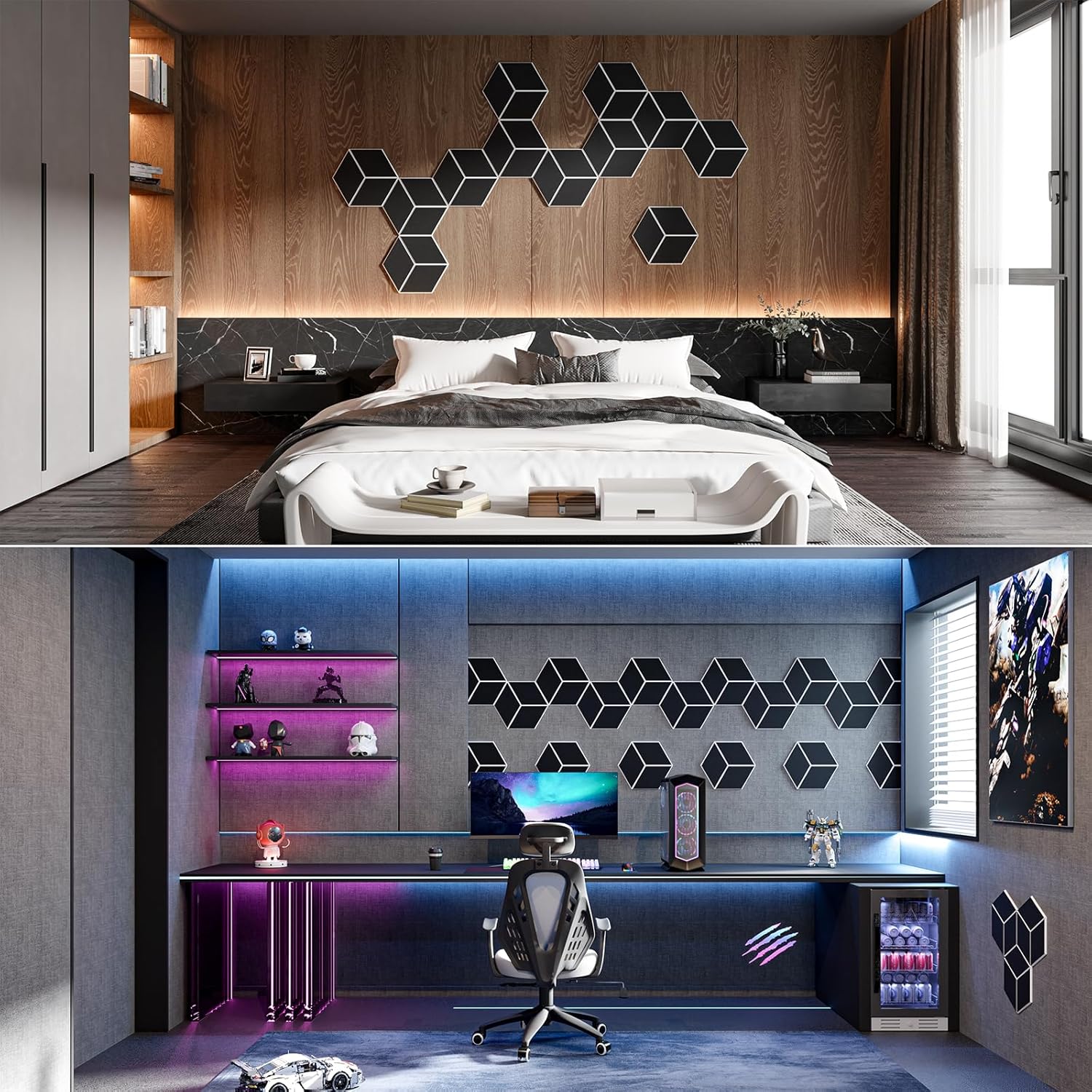 22-Pack Self-Adhesive Acoustic Panels, 12" x 10" x 0.4" – High-Density, Flame-Resistant Soundproof Foam. Absorbs Noise and Eliminates Echoes. Enhance Your Space with Hexagonal 3D Design(BlackFace)