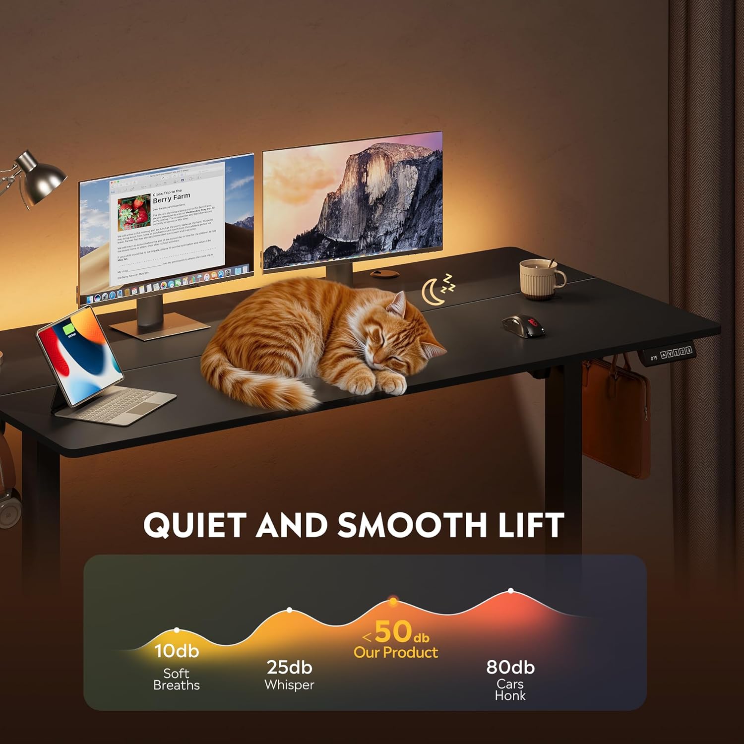 - ăQuite & Smooth Height AdjustmentsăTri-motor system delivers whisper-quiet (<50dB) height transitions (28.35"-46.45") in seconds, eliminating manual adjustments and prevent desktop tilting. Standing desk adjustable height perfected for ergonomic shifts, ensuring buttery-smooth operation whether sitting or standing.