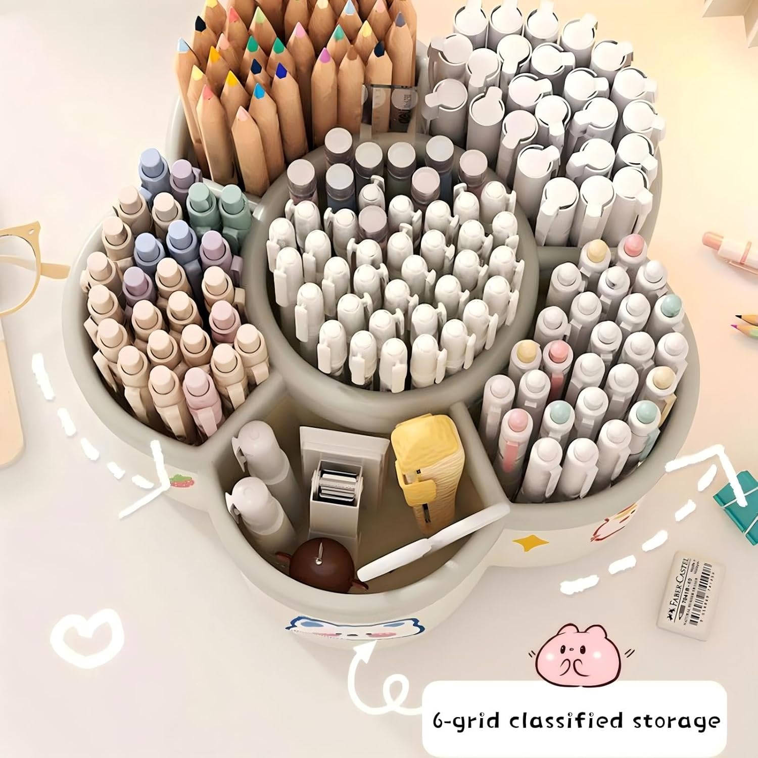 - Superior Material: Aiyawen pen organizer is made of premium ABS plastic, durable and long-lasting; the 360° rotating base of this desk pencil holder is very stable, does not tilt for long term use; waterproof design of our pen cup holder for desk makes it effortless to clean; warm color and cute flower-shape design add a touch of charm to this pen holder for desk cute, make it ideal as office desk accessories for women and kids.
