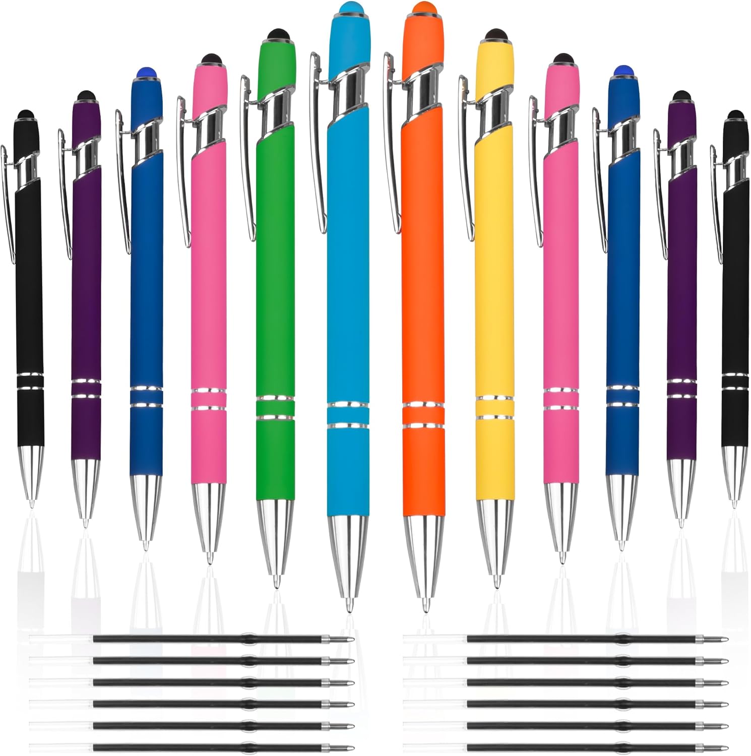 - Package Included: 12 pieces ballpoint pens with stylus tips , and Extra 12 picecs ink(total 24 pieces black ink) Ballpoint pen refills are replaceable;