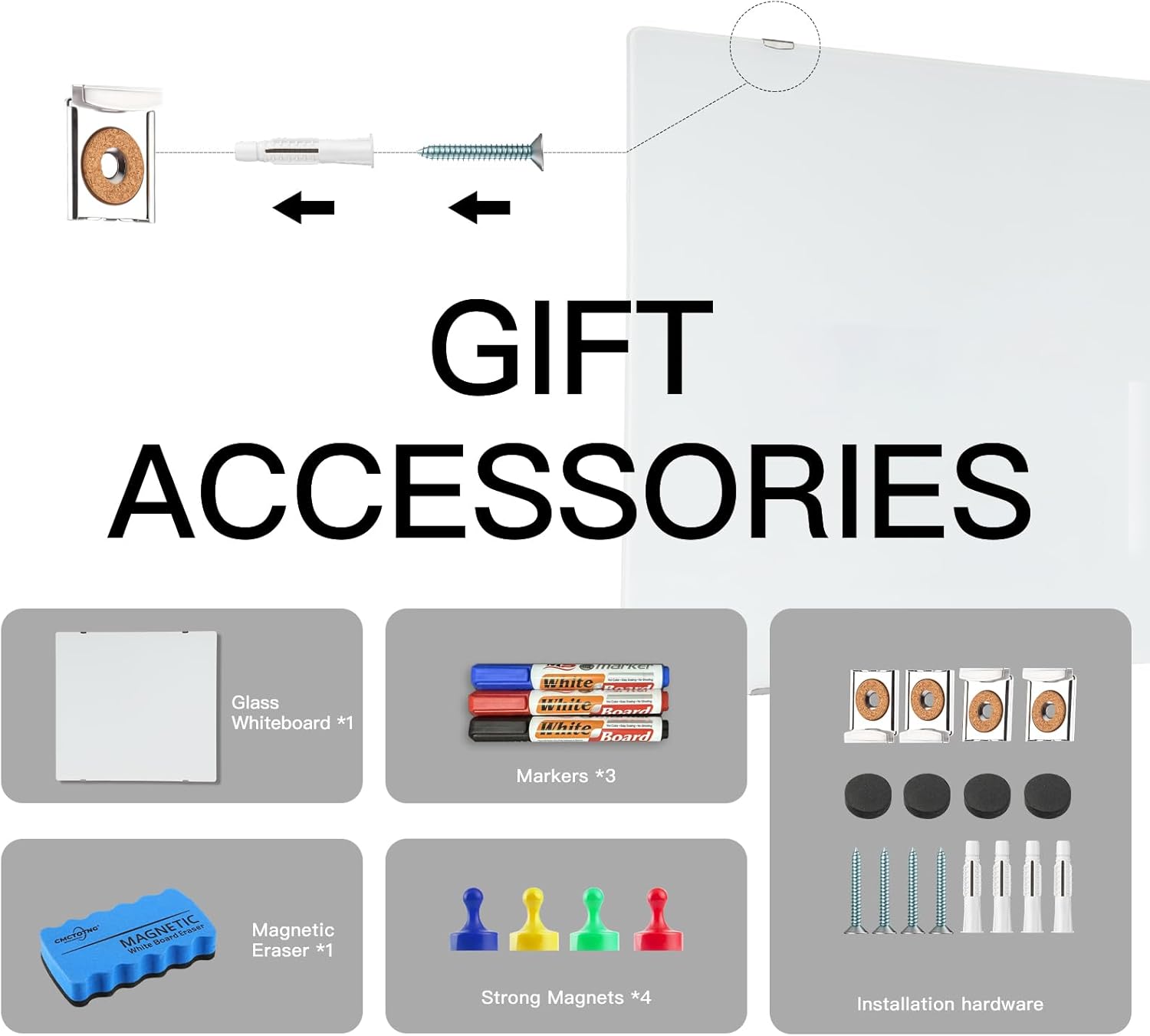 - Easy to Install: Glass Whiteboard Magnetic Dry Erase White Board is easy to install. Through the assembly instructions provided by us, you can easily install the whiteboard vertically or horizontally on the wall.