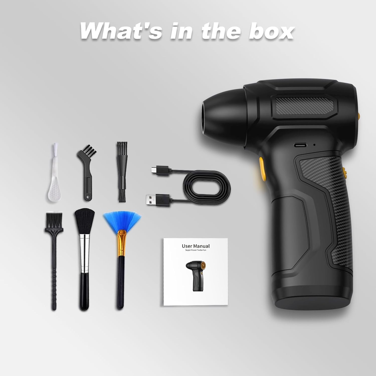 Compressed Air Duster - 200,000RPM Electric Air Duster, Canned Air Blower Alternative for PC, Keyboard, Building Toys, Campfire, Leaf, Home Cleaning (Yellow)
