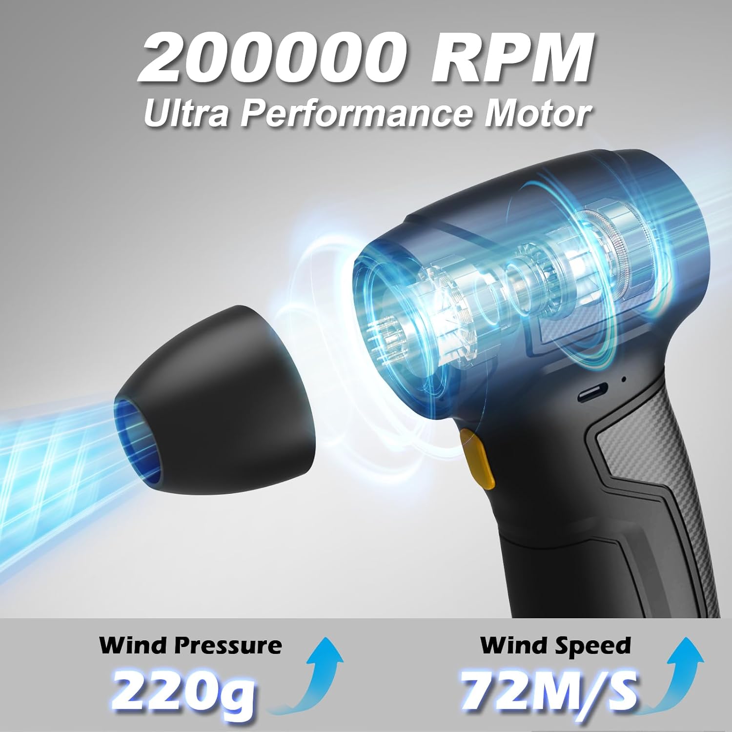 - 【Superior Air Duster Performance】Electric air duster is powered by a high-performance motor reaching up to 200,000 RPM, delivering an incredible wind speed of 72 m/s and a wind pressure of 220g. It effortlessly blasts away dust and debris from keyboards, PCs, and other electronic devices, providing an unparalleled cleaning experience.