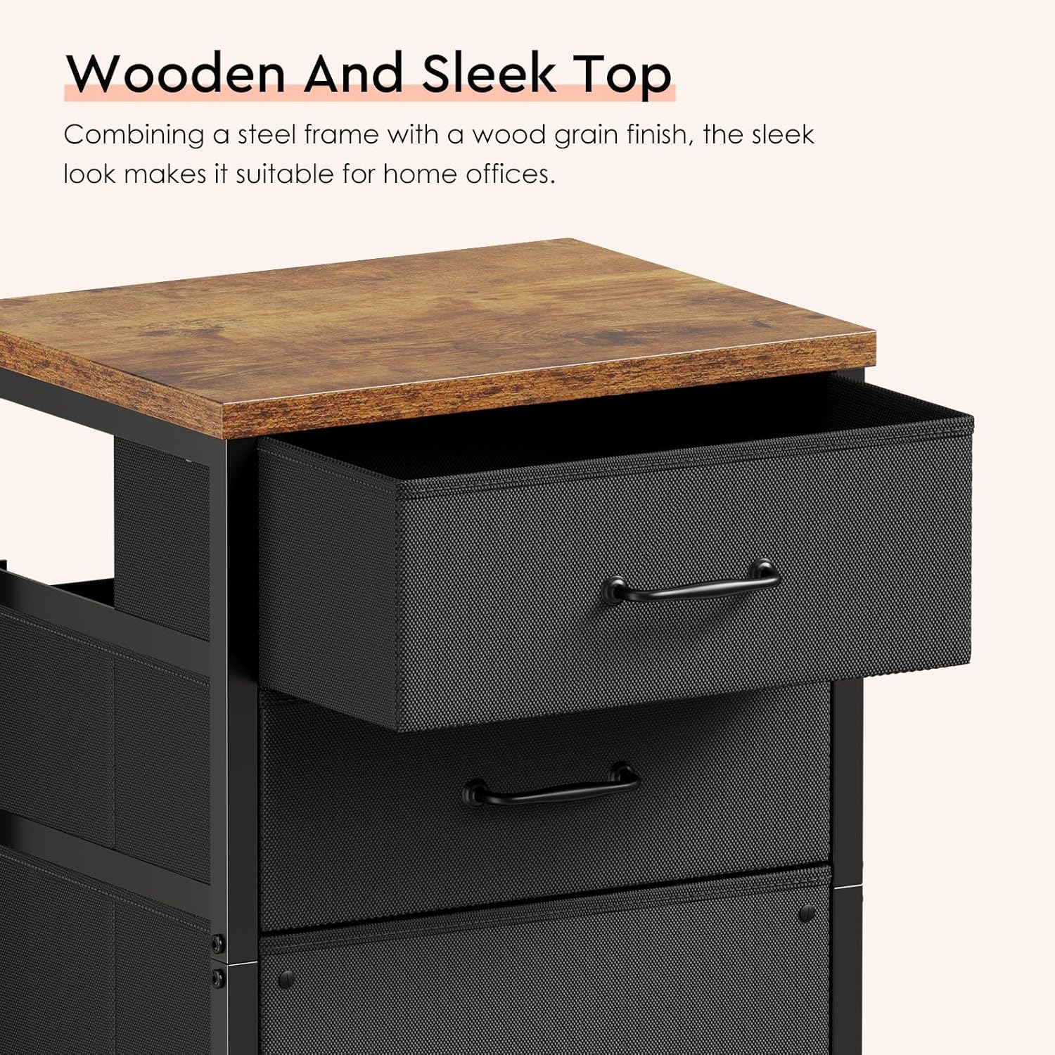 3 Drawer Mobile File Cabinet with Wheels Fabric Vertical Filing Cabinet fits A4 or Letter Size for Home Office,Rustic Brown