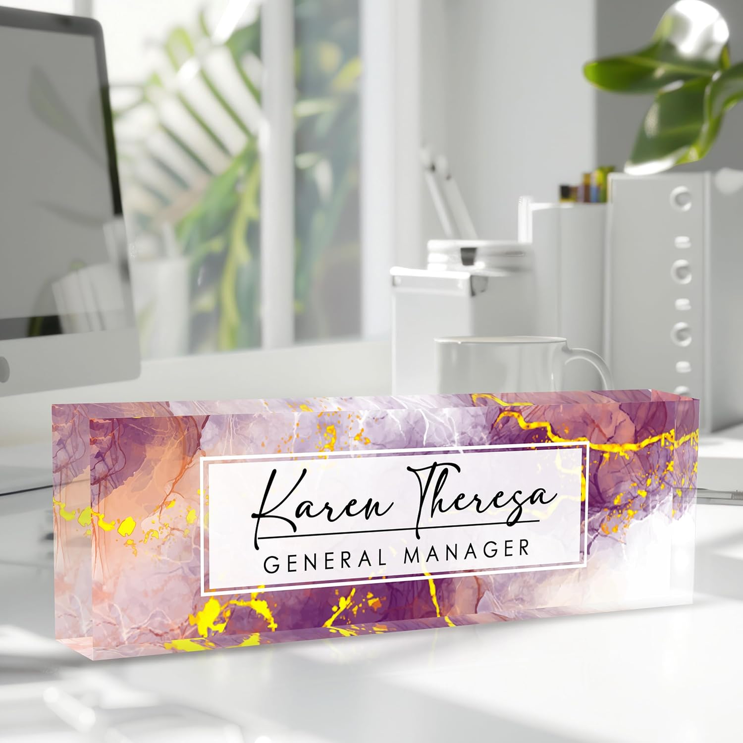 Custom Office Name Plate, Personalized Gifts for Women & Employees, Office Desk Accessory (Purple Marble)