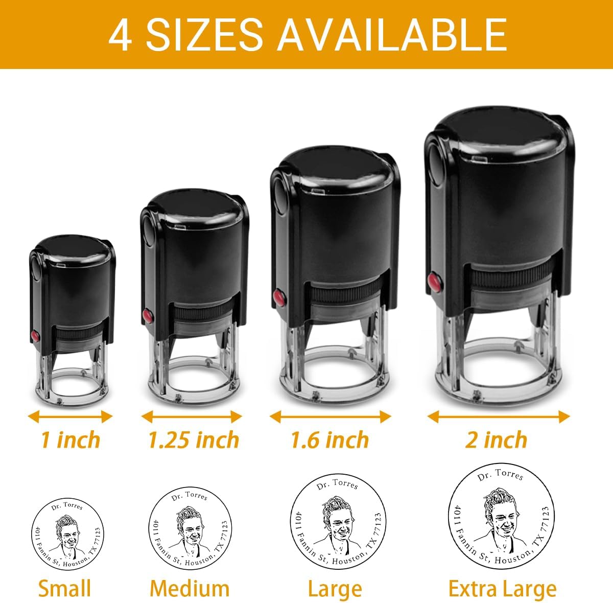 - 【4 Impression Area Sizes】- Our custom rubber stamp is available in 4 different sizes to suit all your needs. Choose from a Small (φ1 inch), Medium (φ1.25 inch), Large (φ1.6 inch), and Extra Large (φ2 inch) -these stamps can accommodate various designs, from detailed pet portraits to logos or text. No matter the size, your custom stamp will deliver clear, professional-quality impressions every time. Perfect for businesses, personal projects, and crafting.