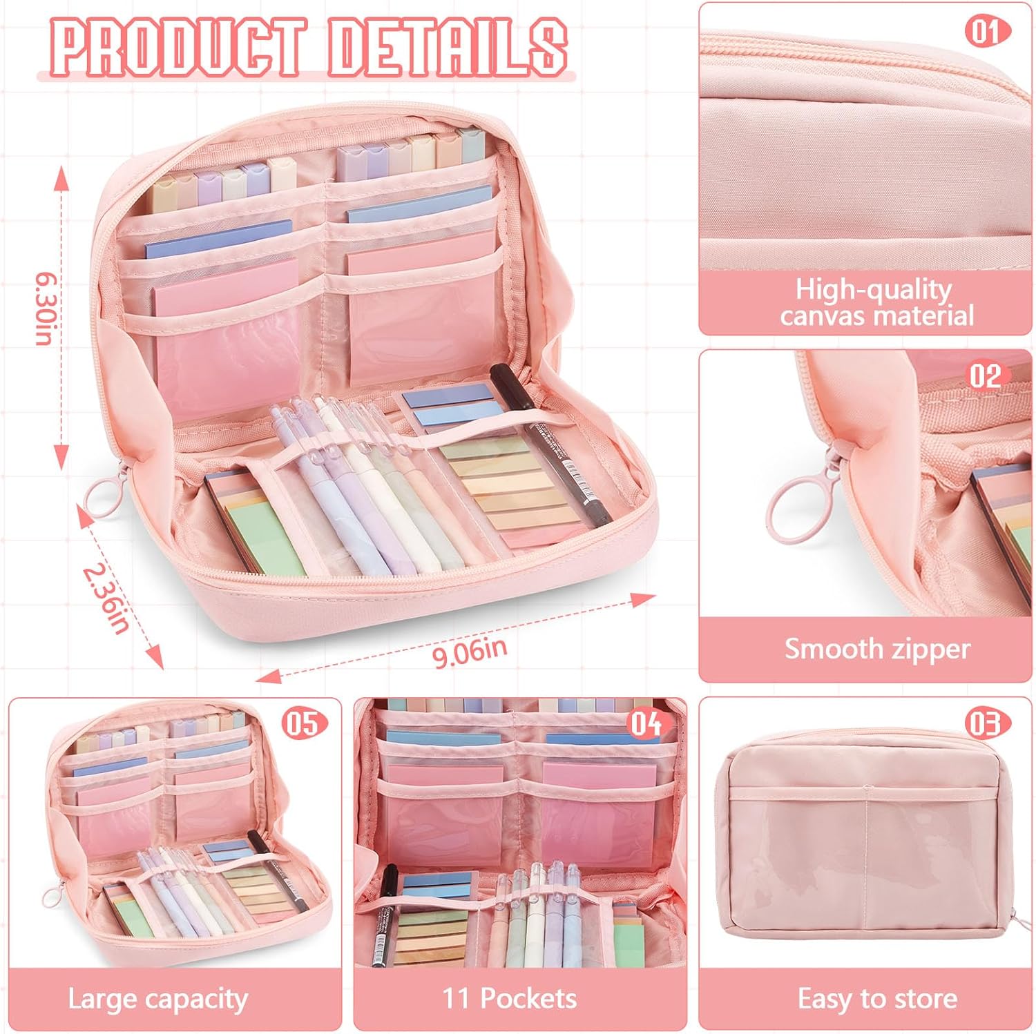 - Large Capability: pink pencil case measures about 9.06 x 6.3 x 2.36 inches/ 23 x 16 x 6 cm, with sufficient space for you to store various stationery, like pens, marker pens, rulers, eraser, pencils and more; Cute pencil bag can be folded, compact and convenient to store and carry around