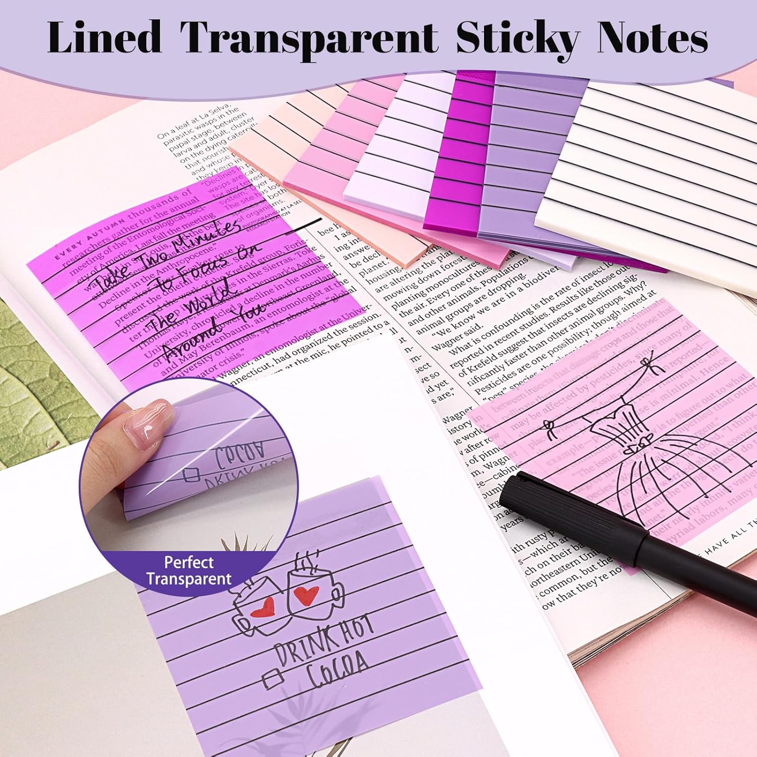- Pens Tips: Discover our professional Transparent Sticky Note Pens, designed for smooth writing and quick drying. These pens are perfect for writing on transparent sticky notes without smudging or staining your books. You can also use ballpoint pens, pencils, or markers with ease. However, we do not recommend using water-based pens for writing.