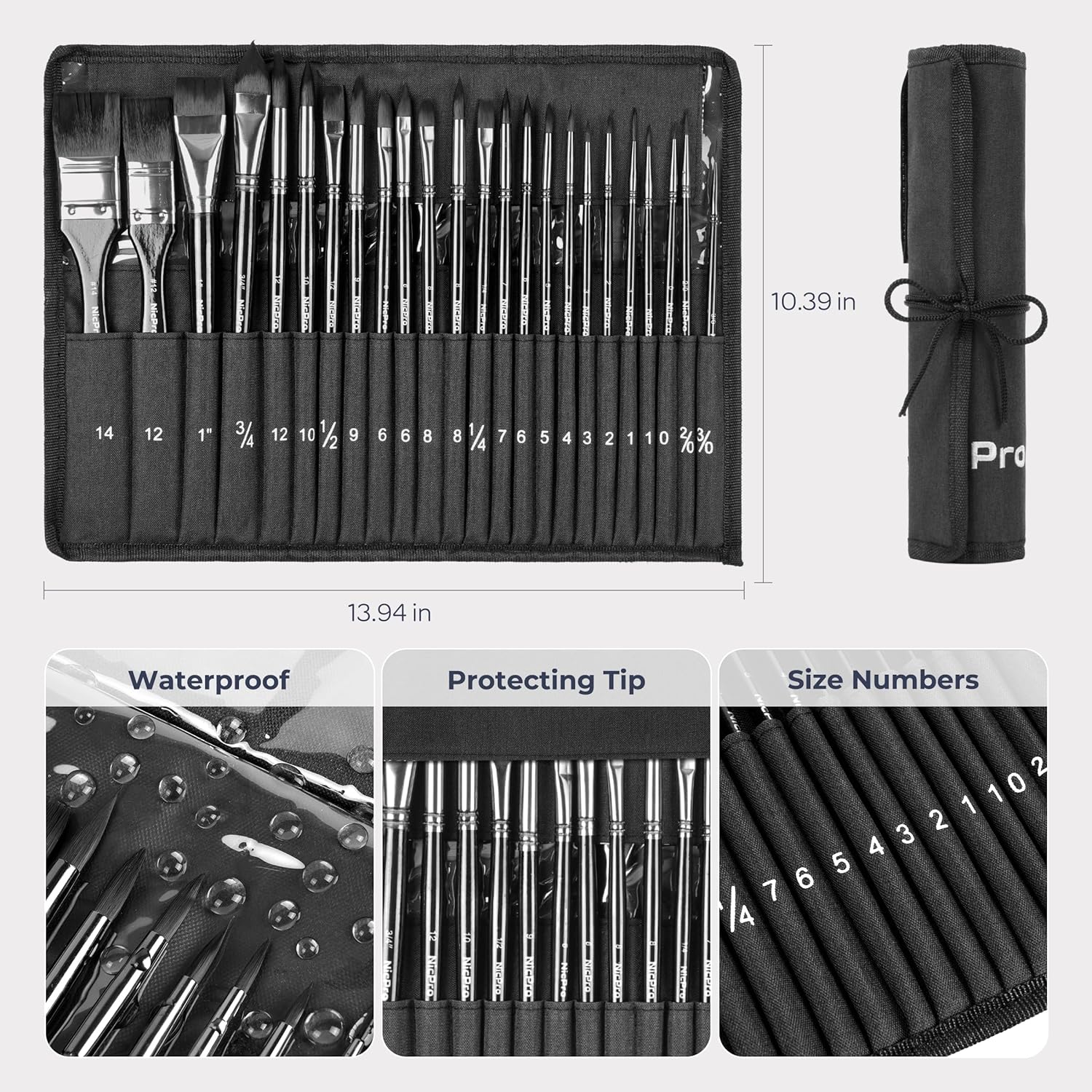 - Water-Resistant Cloth Roll Case: Come with a portable Cloth roll that safely stores your brushes in bags or backpacks and protects them from scratches and wear. Also, stitched with a thickened plastic film on the inside to effectively resist water, oil, paint, etc, providing dual protection and peace of mind. Soft and lightweight, is comfortable to hold and can be unfolded or folded for quick drawing