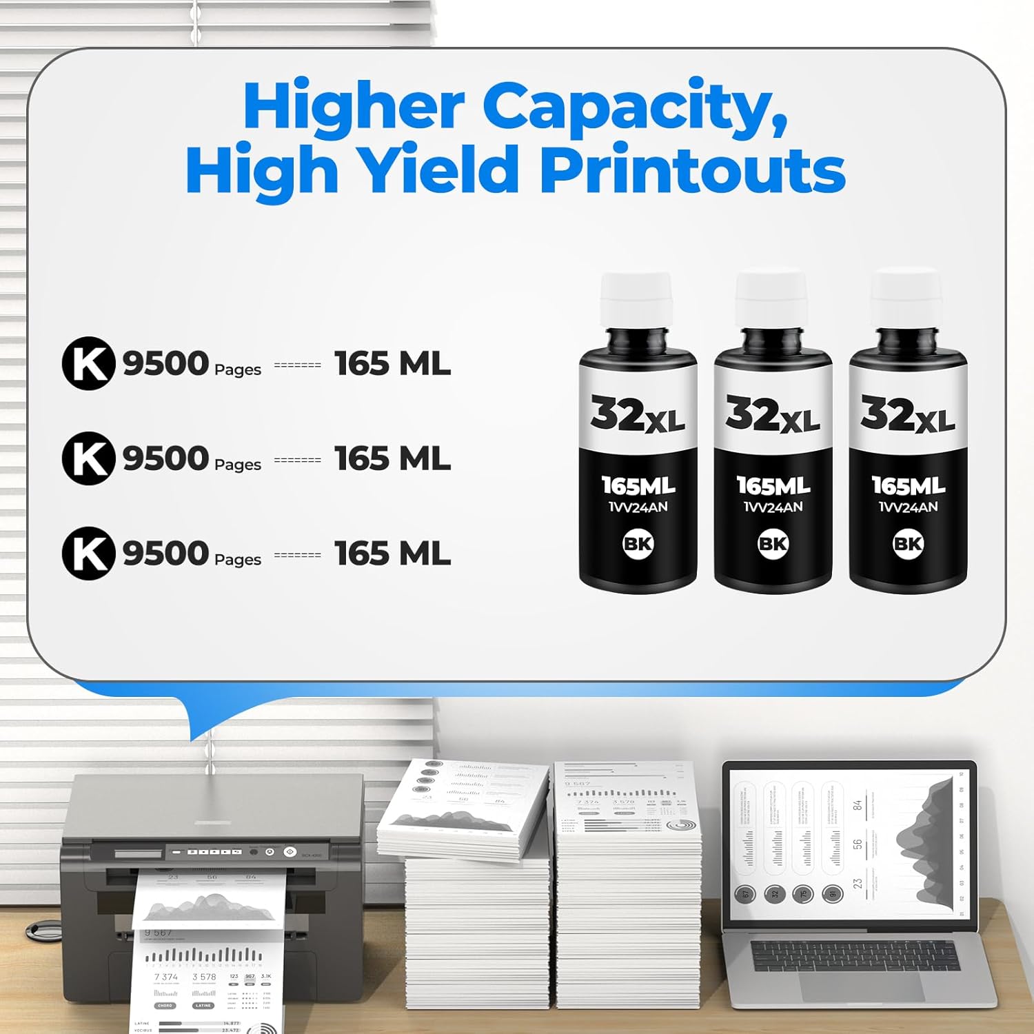 - About the Page Yield: These 32xl smart tank inks are high capacity 32xl black ink bottle set and can print more printouts. At 5% coverage on A4 paper, 9500 pages for every 32xl black ink bottle, it means that 3 Pack 32 xl black ink bottle can print 28500 pages, an excellent smart tank ink refill bottle set. These 31 32xl inks bottle set is for smart tank 7602 ink, smart tank 5101 ink, smart tank plus 651 ink, smart tank 5000 ink, smart tank 7301 ink, smart tank 6001 ink, smart tank 7001 ink