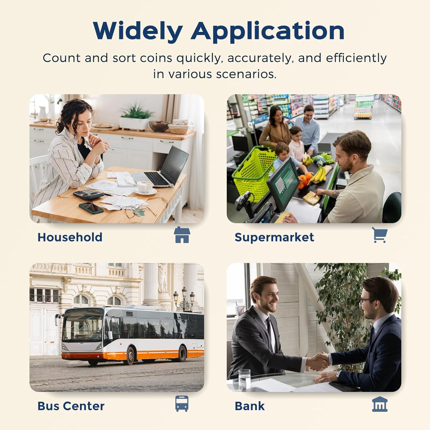 - Multi functional: This coin counter machine integrates coin counting, sorting and packaging, suitable for Dimes, Nickels, Quarters, Pennies, Dollars.