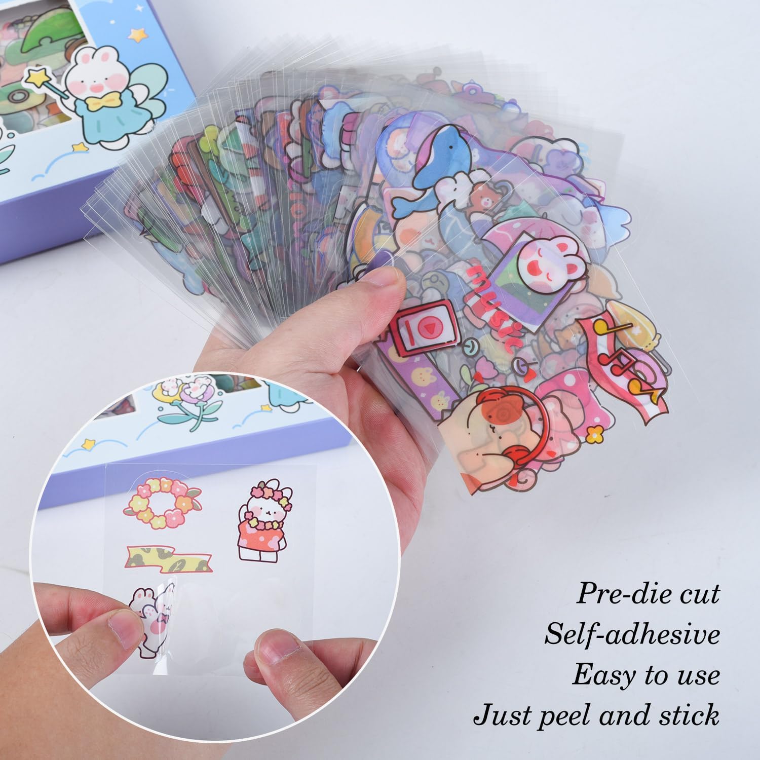- ★EASY TO USE - Cute self-adhesive transparent waterproof PET cartoon aesthetics stickers are well made and correctly pre die cut. They come with good stickiness and abrasion resistance. which is very easy to peel and stick. Just pull the corner with your thumb to separate the backing and sticker. Whether it is for your own use or as a gift for friend and kids, it is a good choice. Rich and cute patterns can be used to decorate various items. Add fun to everyday life!