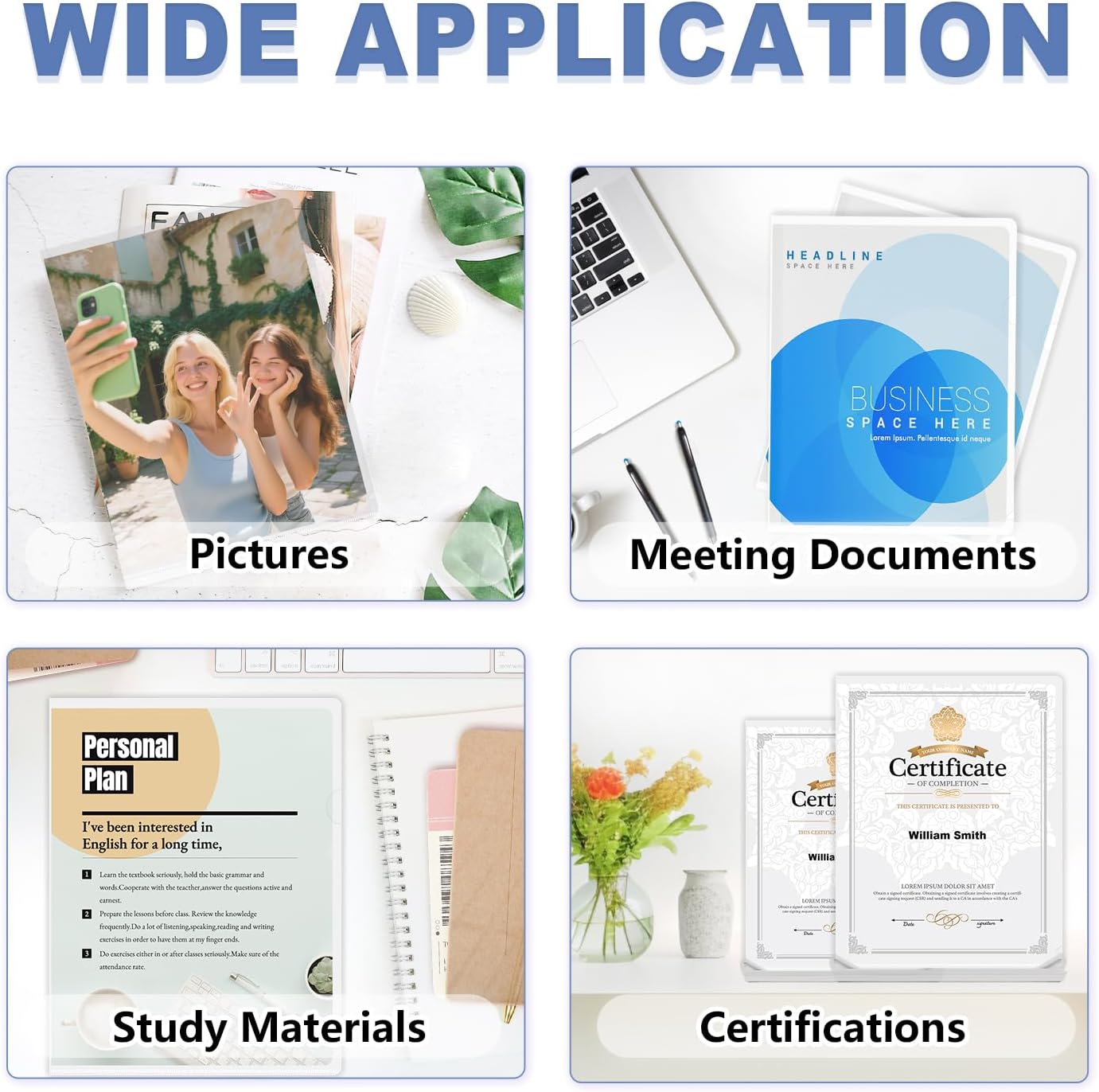 - 【Versatile and Portable】Ideal for work reports, presentations, loose pages, teaching materials, homework assignments, and protecting/storing artwork, our clear folder sleeves are versatile for any setting, be it school, office, or home
