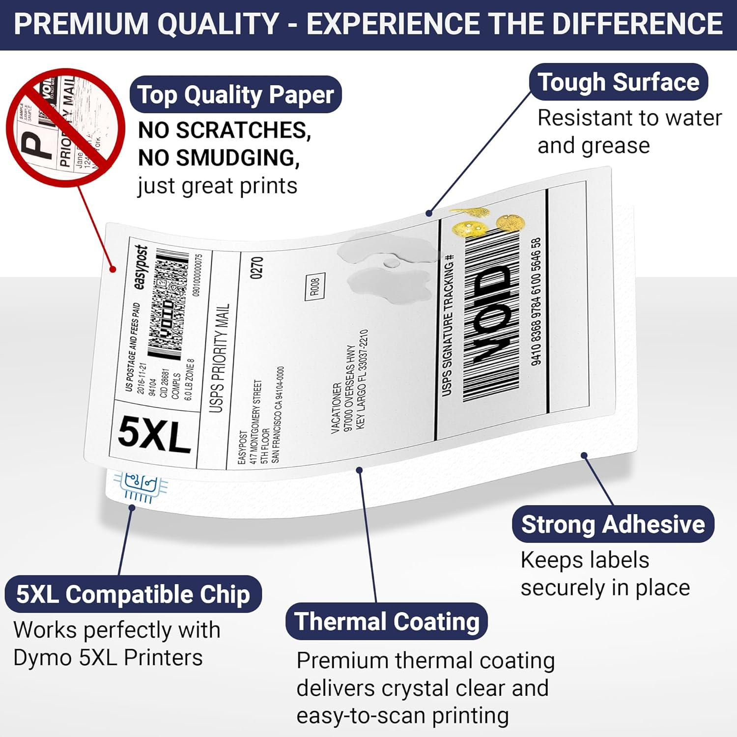 - 100% Compatible with Dymo LabelWriter 5XL: Our labels are equipped with an RFID chip to ensure seamless compatibility with the Dymo LabelWriter 5XL, providing reliable and hassle-free performance. They are also compatible with other major thermal label printer brands like Rollo and Zebra. Each batch is rigorously tested for dependable results, making them an excellent choice for all your labeling needs.