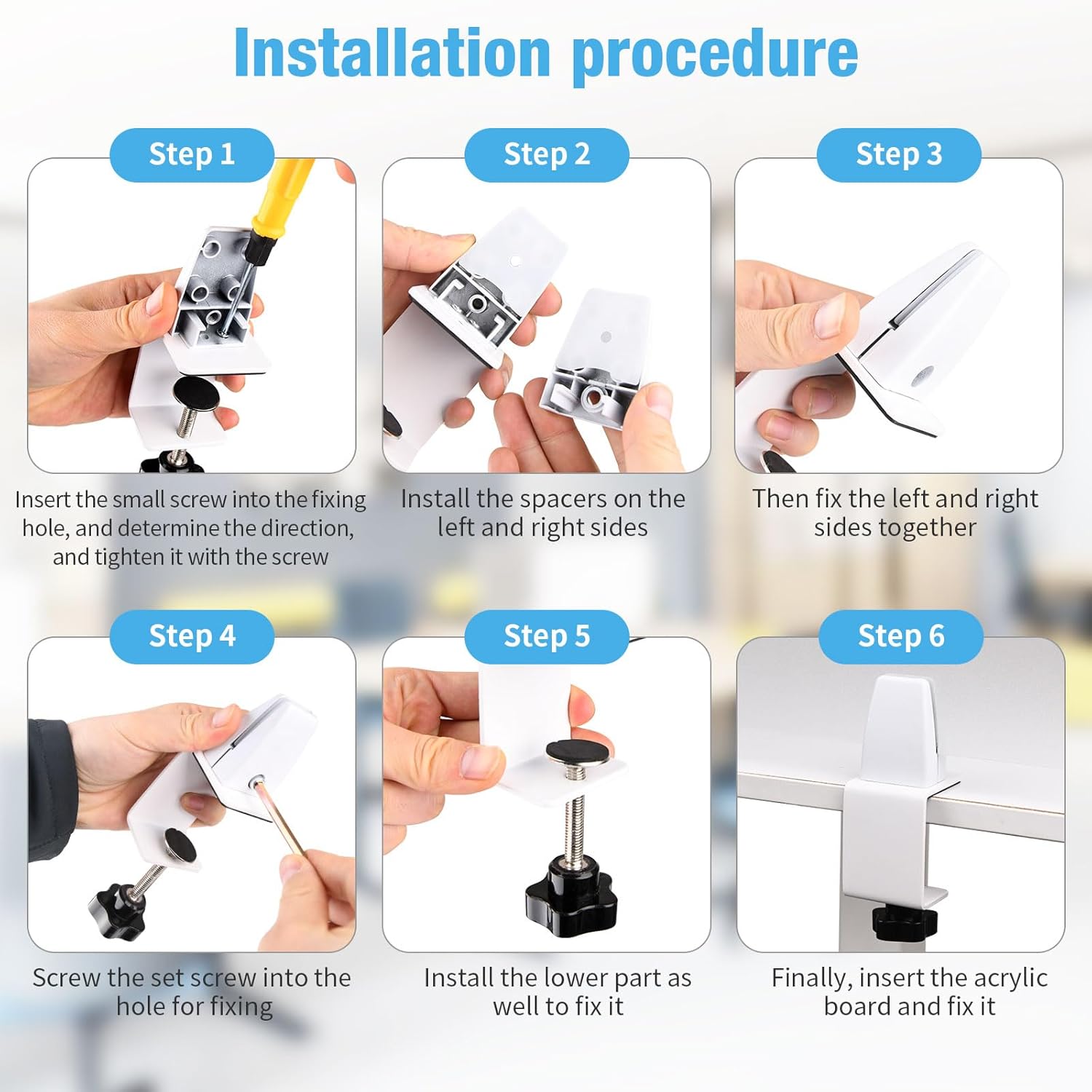 - 【High Quality Material】-Our acrylic desktop partitions are made of high-quality frosted acrylic, and the Clamps are made of high-strength alloy steel. They are beautiful and coordinated, and can perfectly blend with your office and learning environment. They are sturdy, durable, and easy to clean.Perfect packaging prevents the product from scratching the surface during shipping.