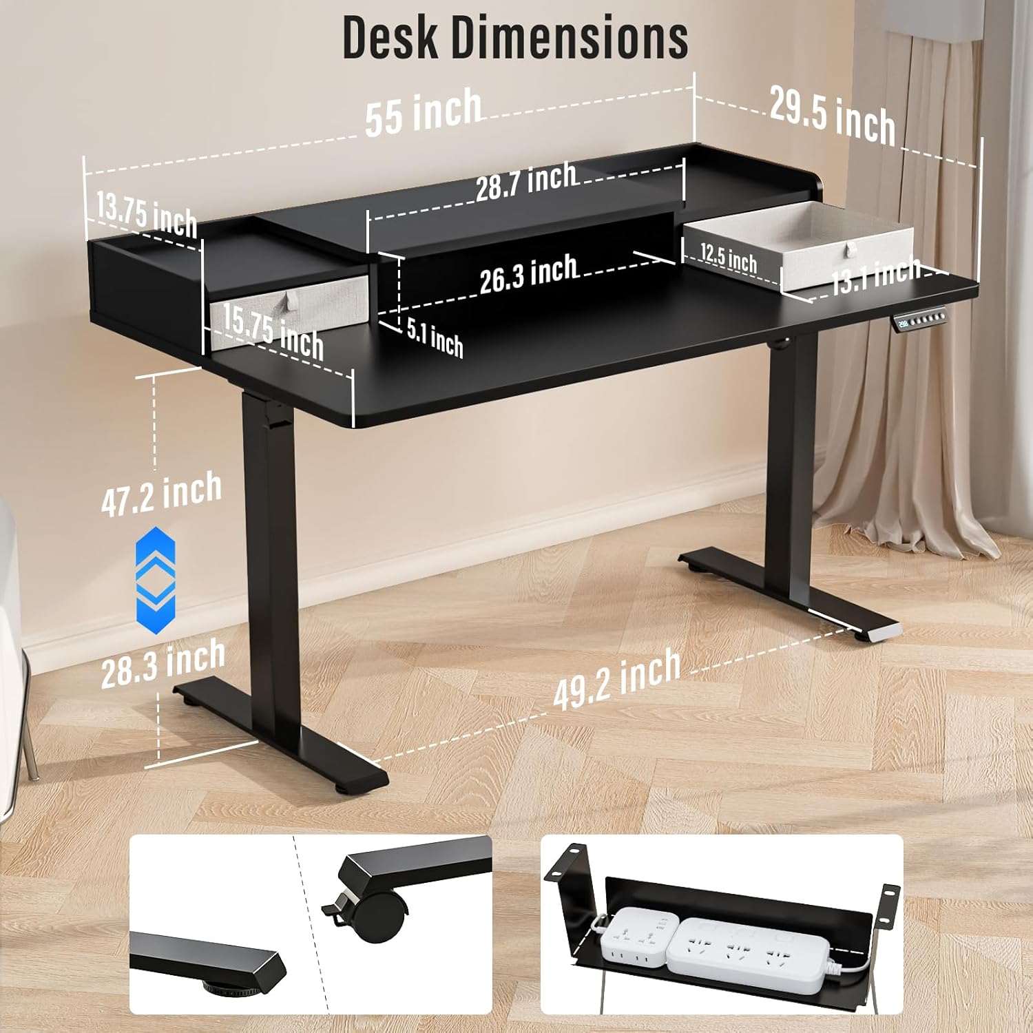 Standing Desk with Drawers,Thickened Table Legs Sit Stand Desk Electric for Home Office & Gaming,Ergonomic Stand Up Desk Cable Management Tray(Classic Black) (Classic Black, 55″ x 30″)