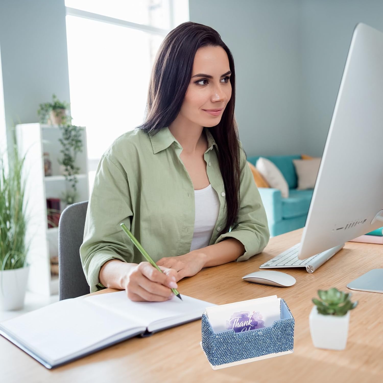 PATIKIL Rhinestone Business Card Holder, Crystal Business Card Holders Bling Business Card Organizer Display Stand for Desktop Desk Office Exhibition, Blue