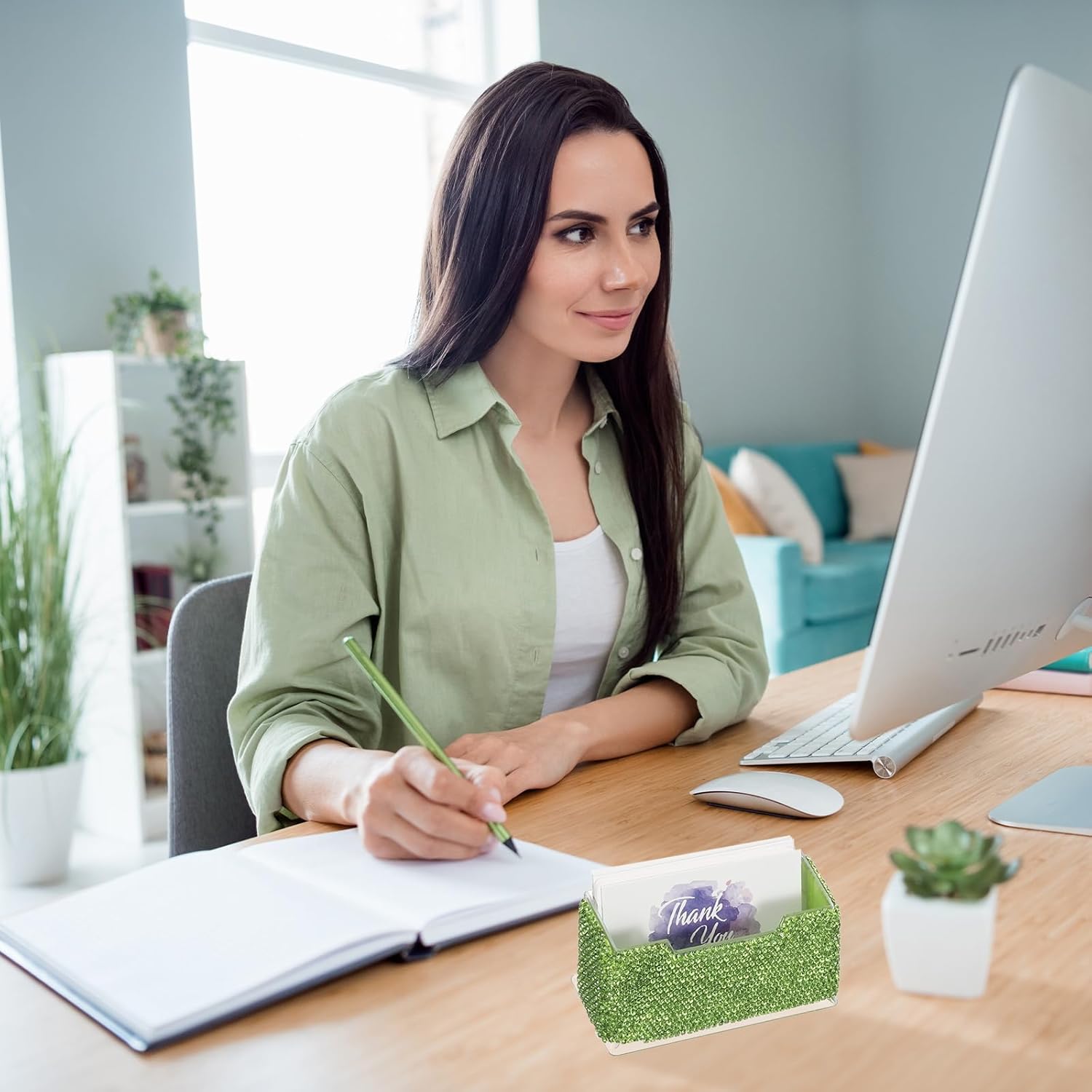 PATIKIL Rhinestone Business Card Holder, Crystal Business Card Holders Bling Business Card Organizer Display Stand for Desktop Desk Office Exhibition, Green