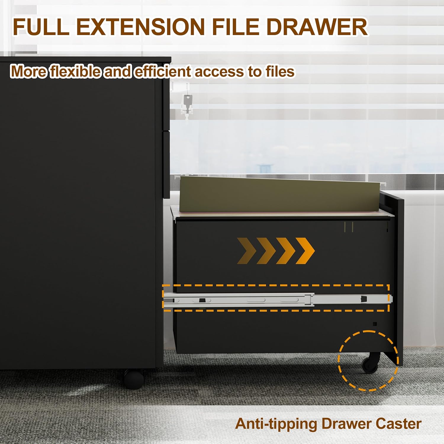 - [Excellent Security and Stability]: Specially designed anti-tip wheels under the large drawers ensure that the filing cabinet remains stable and Even if the drawer is full of files, it will not fall over. The interlocking system and four keys further enhance security and protect your important documents, making it an ideal choice for home offices.