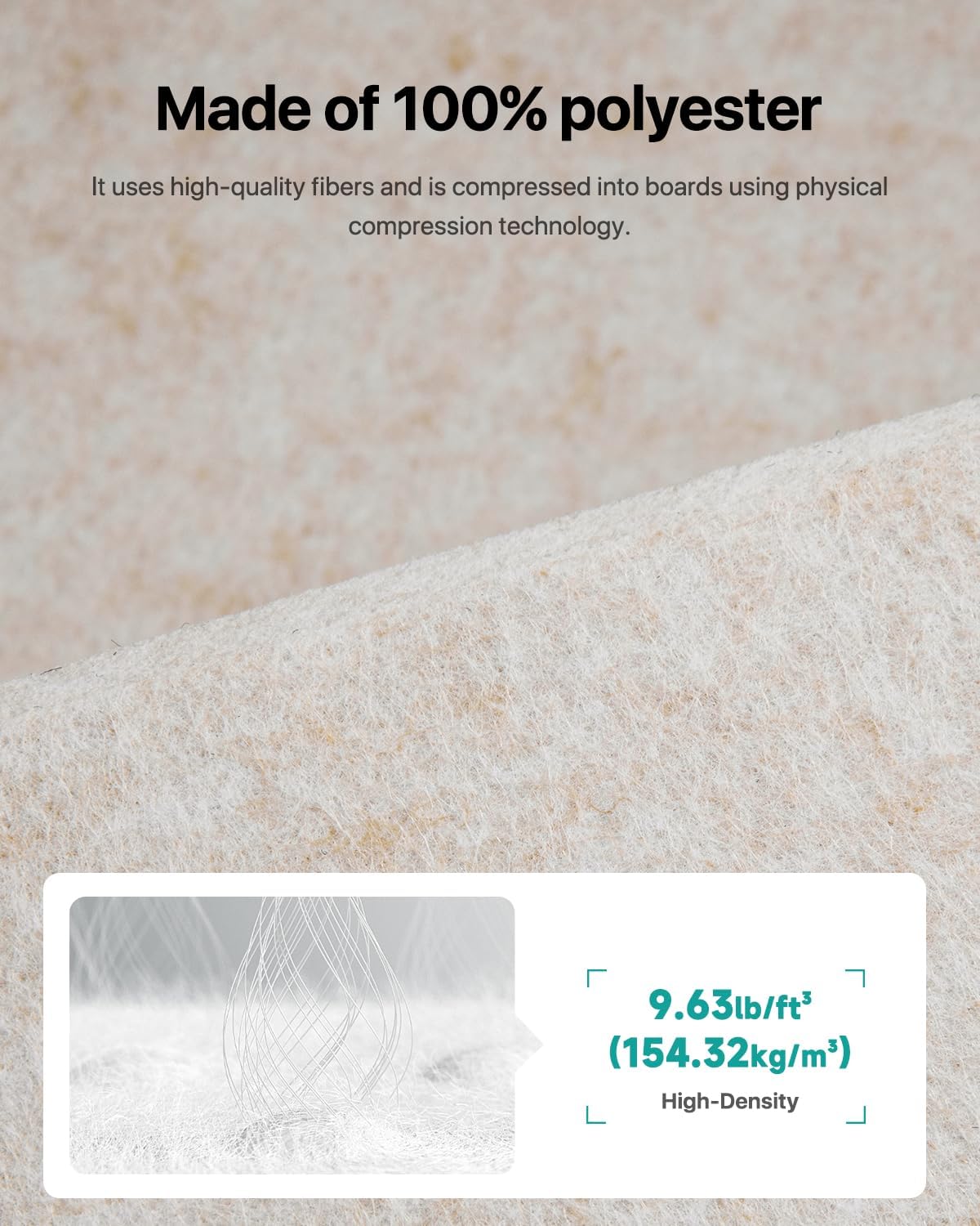 - High-Quality Material: Sound proof panels for walls made of 100% high-quality polyester fiber;soundproof foam panels are durable and wear-resistant