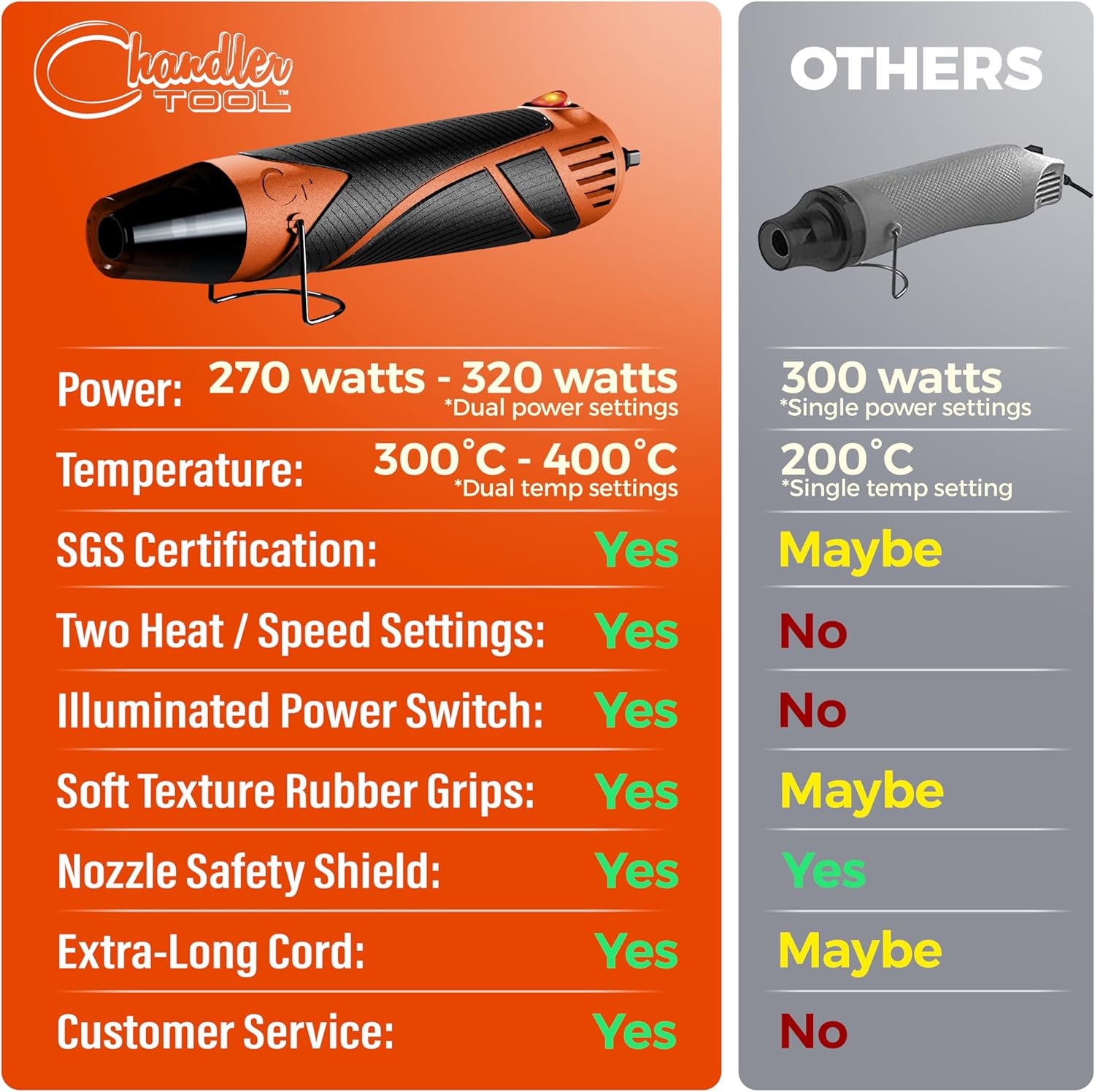 - ▶ Variable Speed & Heat: Our heat gun for crafts has dual temperature and speed settings - low speed & heat for delicate or detail work and high speed & heat for heavy duty or high volume work. It’s like having a mini heat gun and a full size heat gun in one!