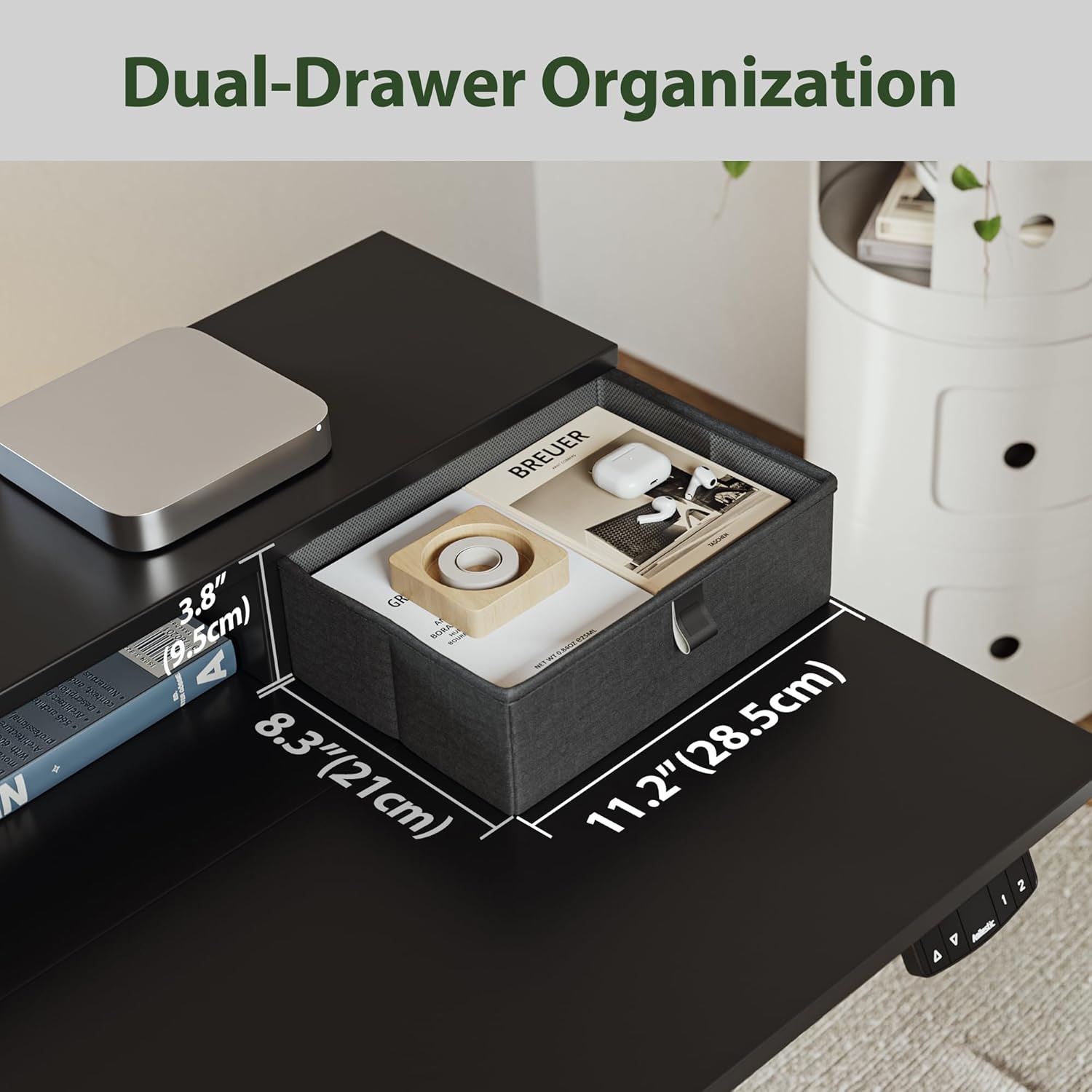 Agilestic 53x 24 Inches Height Adjustable Electric Standing Desk with 2 Drawers, Stand Up Electric Desk Adjustable Height, Sit Stand Computer Gaming Table with Splice Board, Black