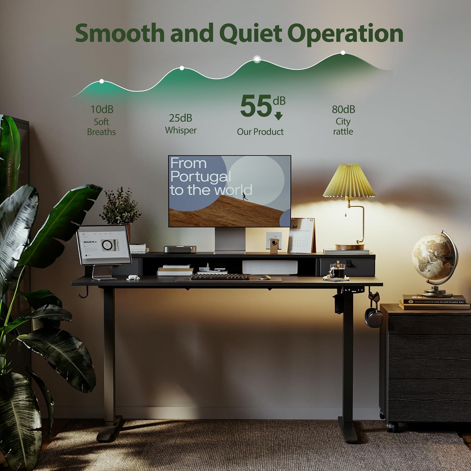 - ăAdjustable Height for Sit and Stand Flexibilityă Effortlessly switch between sitting and standing with the electric height adjustment feature. The desk height can be adjusted from 27'' to 45'', allowing you to find the perfect position for your work and health needs. The quiet motor operates below 55 dB, ensuring a peaceful work environment.
