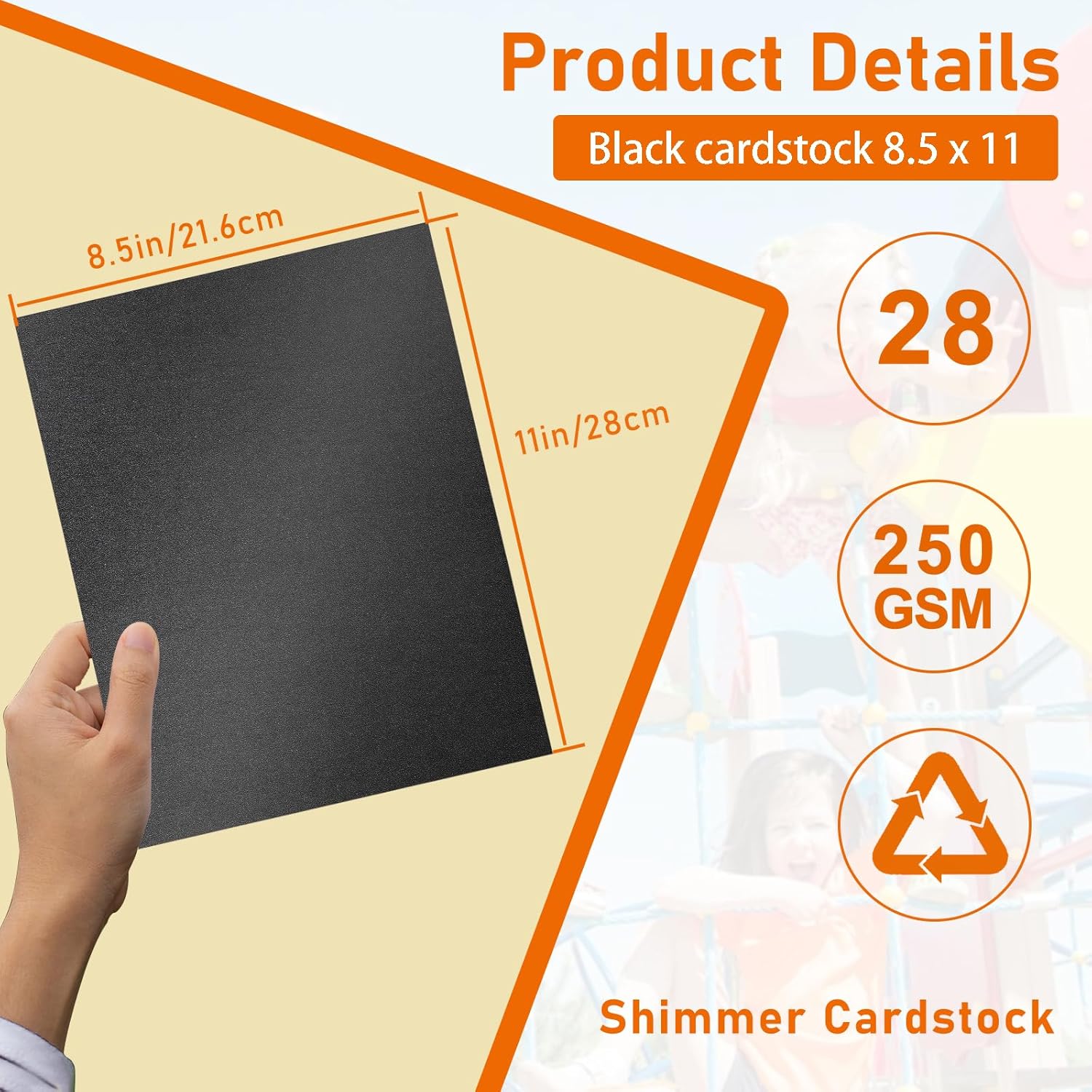 - Black Shimmer Cardstock 8.5 x 11:Each package heavyweight black craft paper card stock includes 28 sheets, 360g in weight, Eco-friendly and safe for all ages