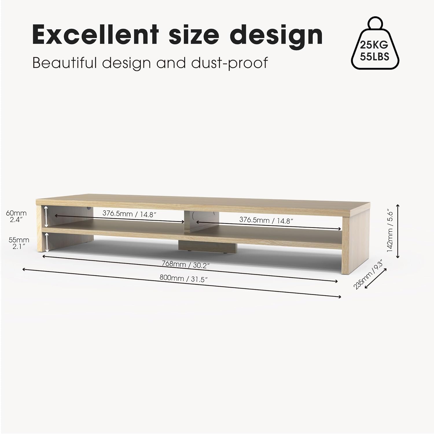 Fenge Monitor Stand, 31.5 Inch Computer Monitor Riser for Desk, 2 Tiers Wood Desk Shelf with Storage, Desktop Organizer for PC, Laptop, Screen, Printer