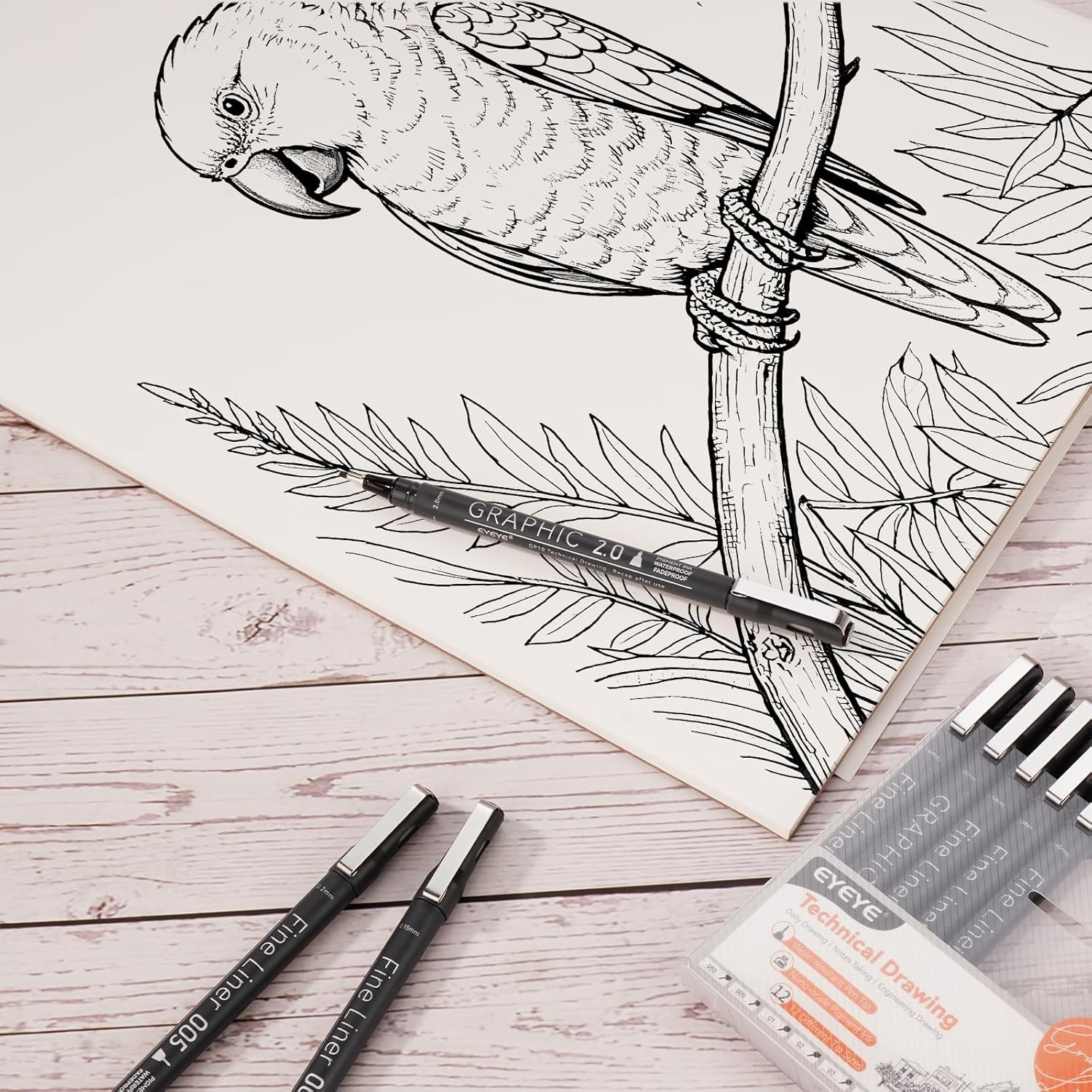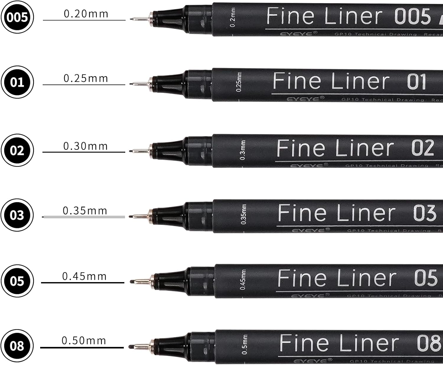 - eyeye Micro Pens, Black Drawing Art Pens,0.2/0.25/0.3/0.35/0.45/0.5mm Archival Pens Waterproof Ink Set Artist Supplies Archival Inking Markers Sketch Outline Pen
