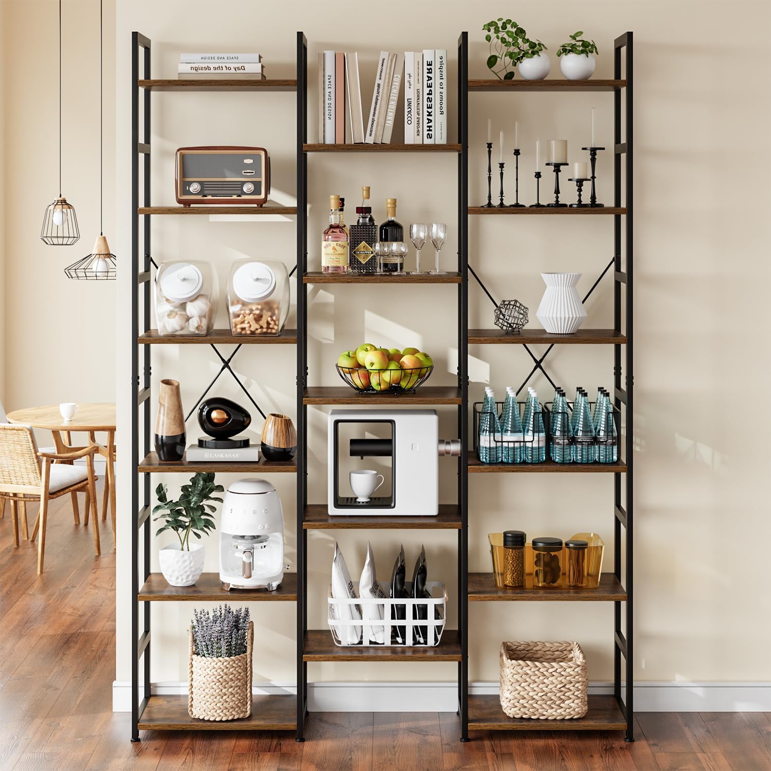 NUMENN Triple Column 6 Tier Bookshelf, Bookcase with 17 Open Display Shelves, Adjustable Rustic Industrial Style Book Shelves, Modern Bookshelves for Bedroom, Living Room and Home Office, Vintage