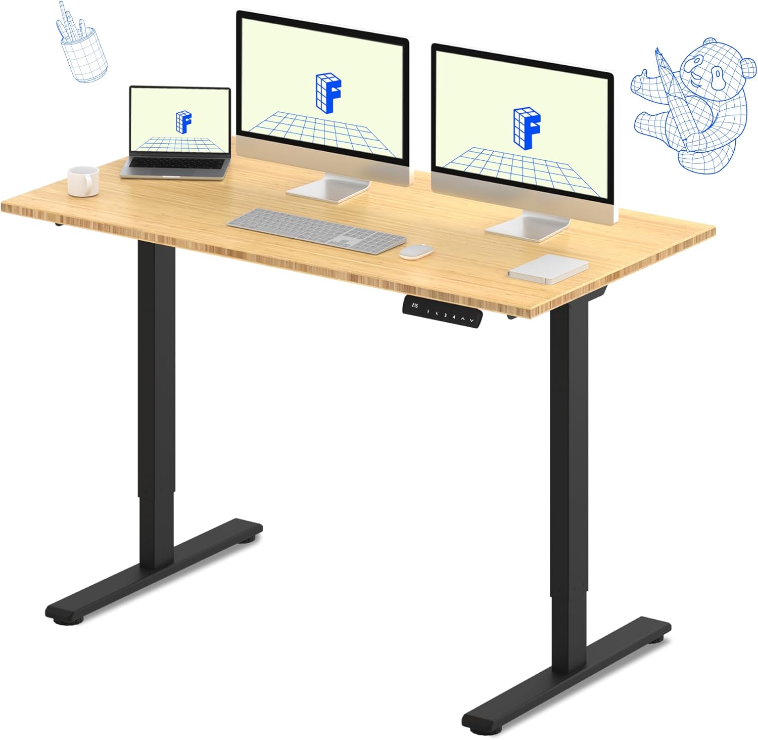 FLEXISPOT E3 Bamboo Dual Motor 60x30 Inch Electric Height Adjustable Standing Desk Whole-Piece Board Sit Stand Up Desk (Black Frame + Bamboo Desktop)