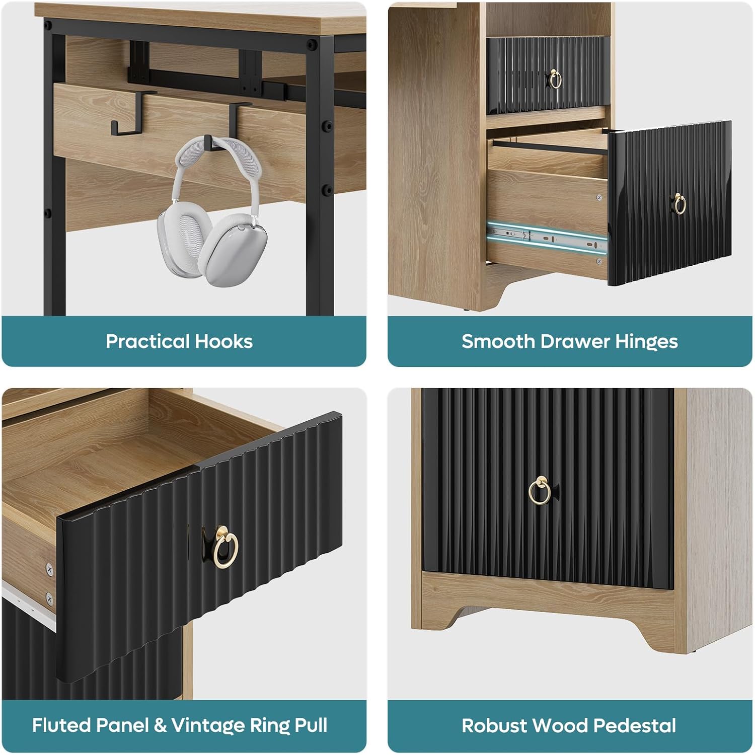Bestier 55 Inch Computer Desk with Keyboard Tray, Modern Office Desk with Storage, Wood Writing Desk with File Drawer, Fluted Panel & 2 Hooks for Home Office & Studio, Natural Oak