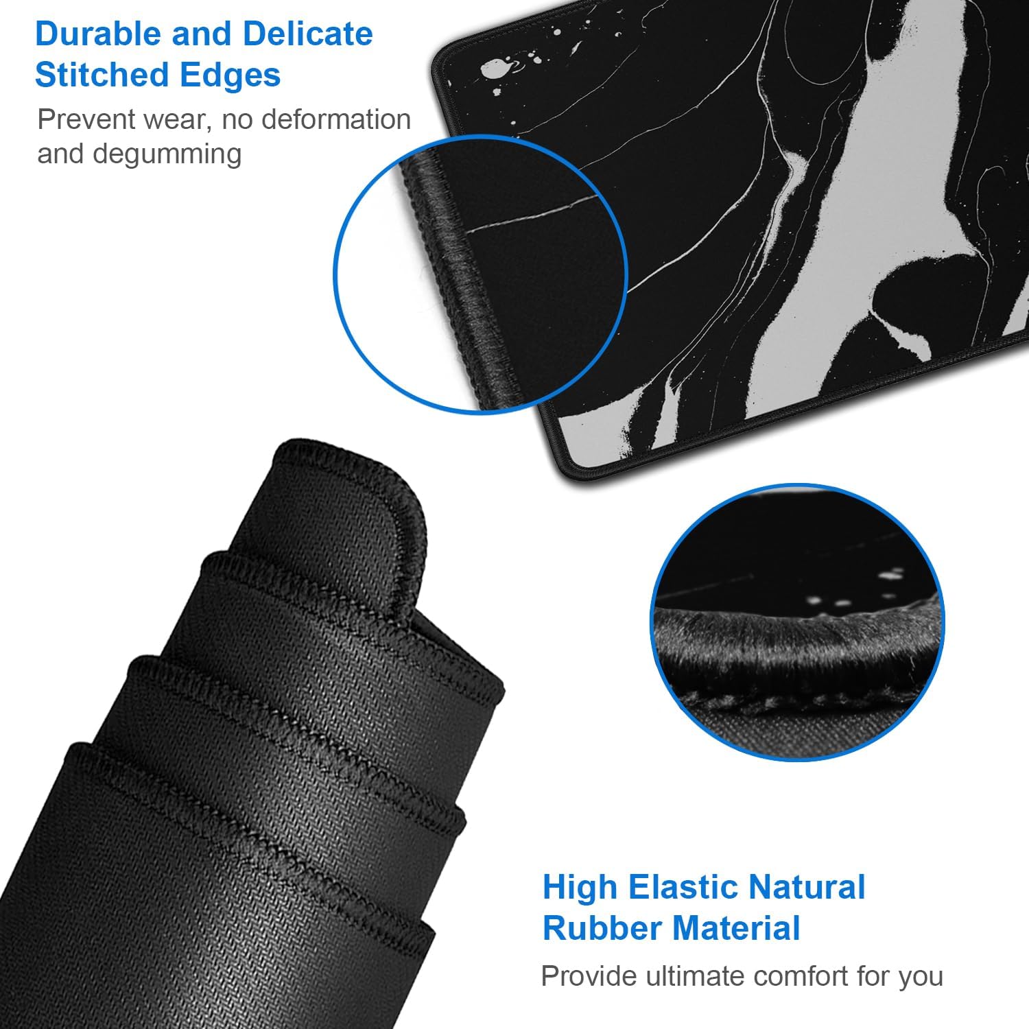 Large Mouse Pad, 31.5x15.7 inch Large Extended Computer Keyboard Mouse Mat, Water Resist Non-Slip Mousepad Rubber Base Long XXL Desk Mouse Pad for Work & Gaming, Office & Home, Black White
