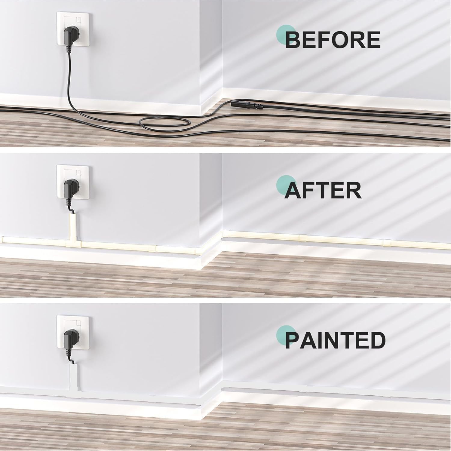 - Painted and Cuttable: Customize your home the way you want! Easily customize the beige tv cord hider to your project whether it’s tidying up wires in the home theater, workstation, living room, or office. Cut the wire hiders wire covers for cords on wall to whatever length you need and paint them to match your room decor however you like