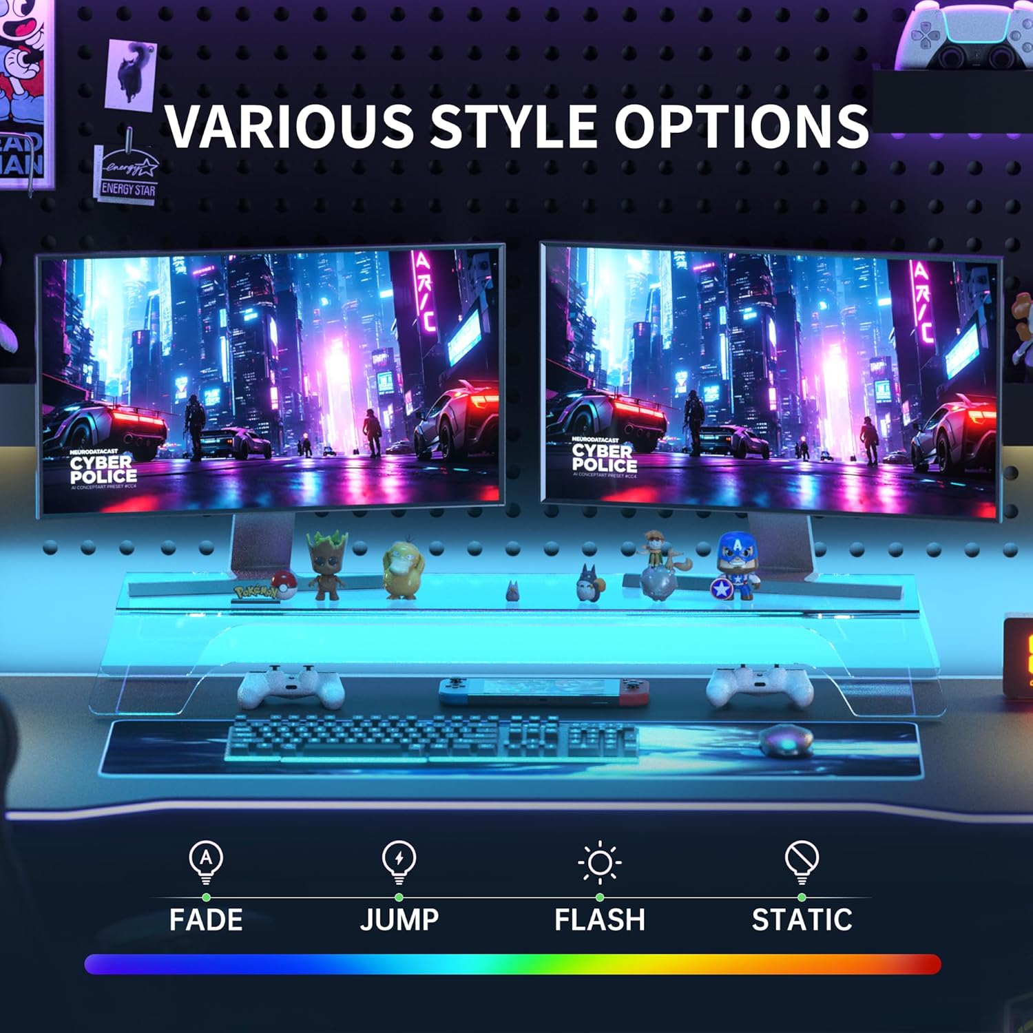 Clear Acrylic Dual Monitor Stand Riser,LED Light 31.5 Inch Computer Monitor Stand for 2 Monitors,Office Desktop Organizer for Laptop,PC,Computer,Printer