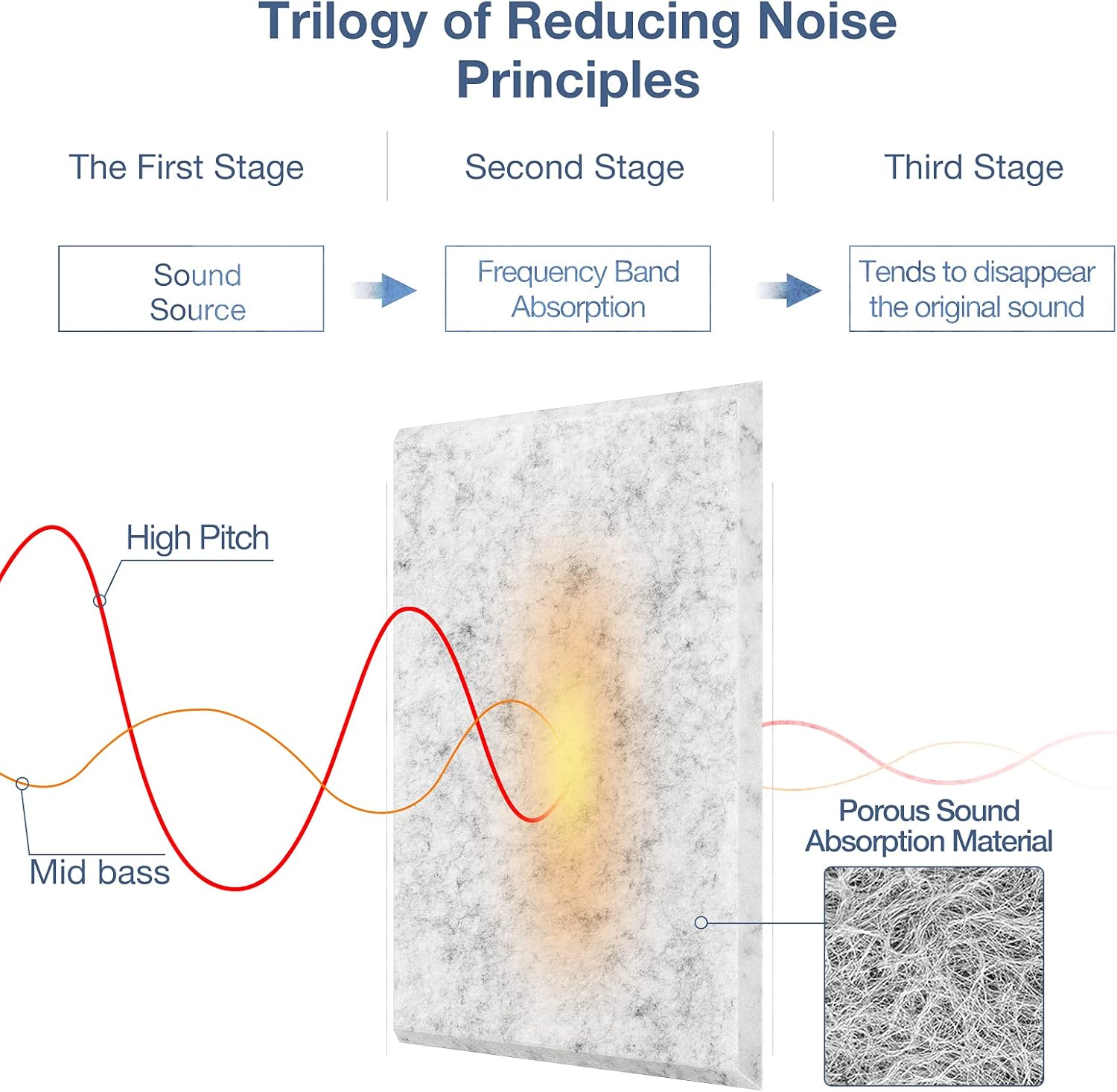 - What's the Effect: Soundproofing panels are an easy, elegant acoustic fix for nearly any space. Thanks to the high density, the tiles are great for reducing background noise, echoes, reverberation time(RT), and decrease standing waves, improves speech intelligibility, and help increase sound clarity in a room or space